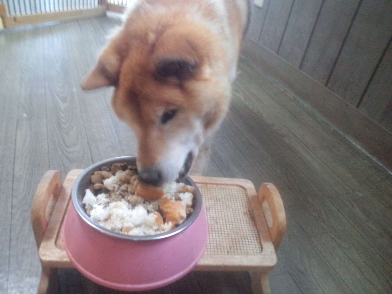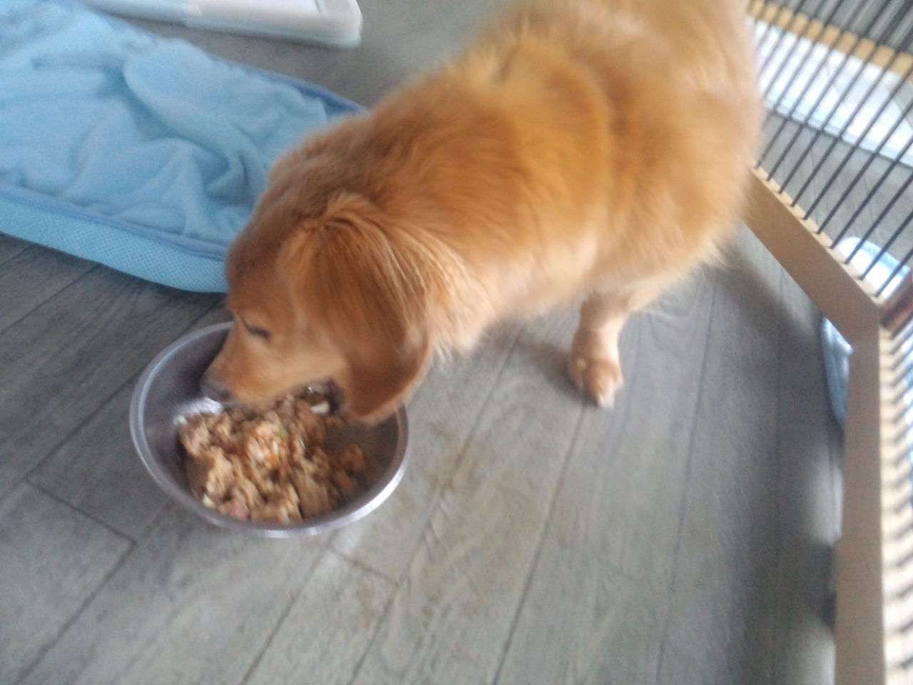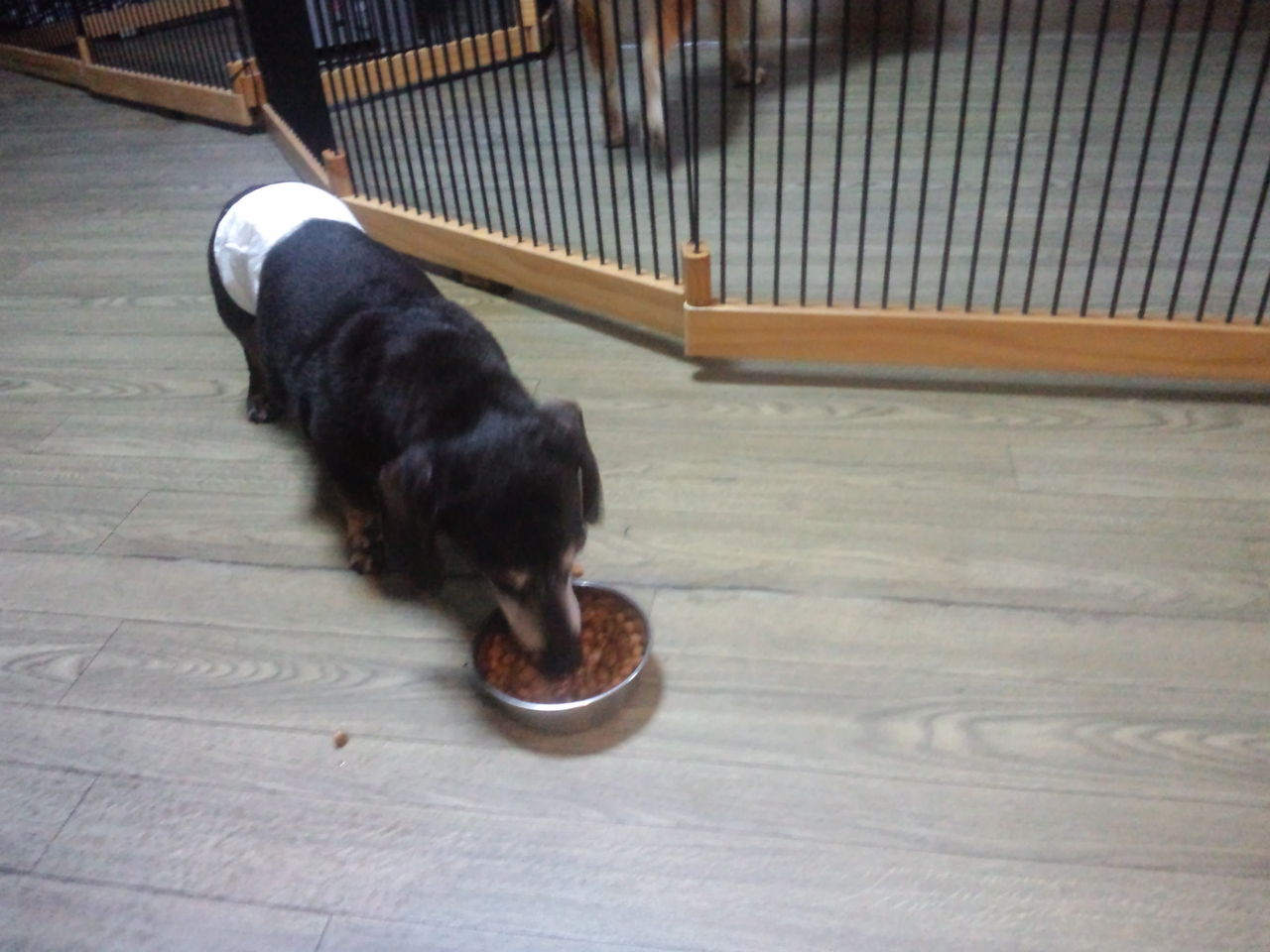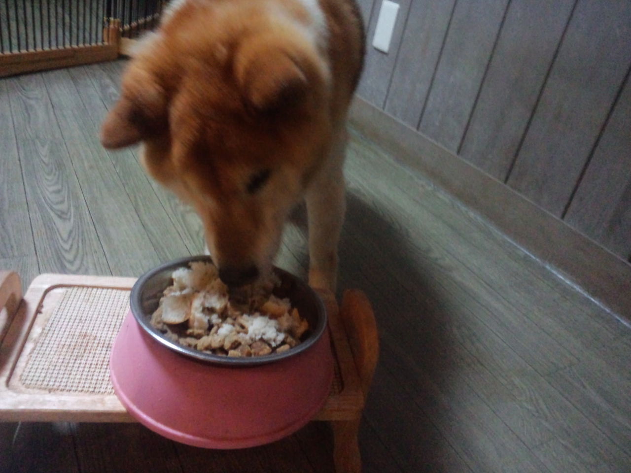 長期預かり柴ハチ君、半分食べました。 生涯預かりダックスズのラブ君とチャコ君、しっかり完食しました。