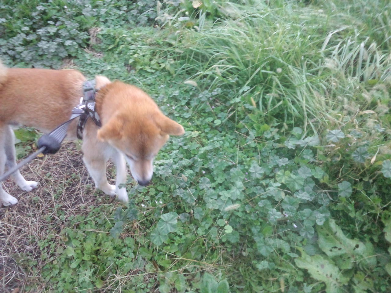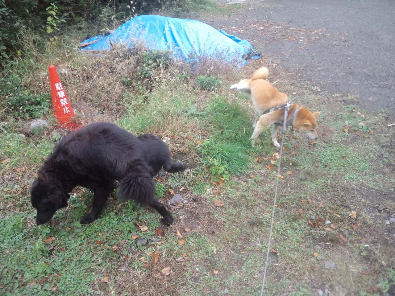 今朝はお散歩前に敷地内で大治郎と遊ばせてます。
