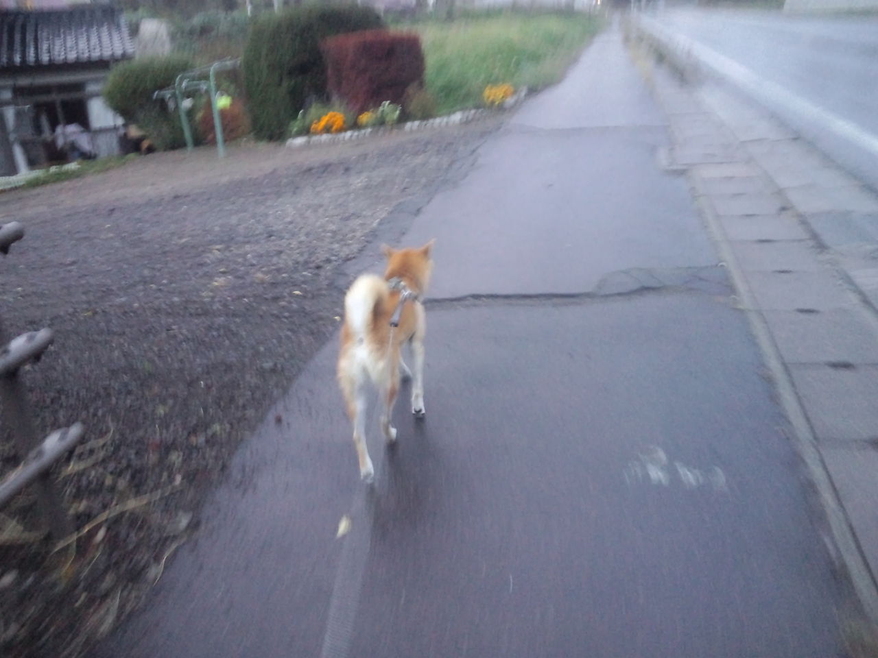 ハチ君は雨にもお構いなしで元気に歩いてます。
