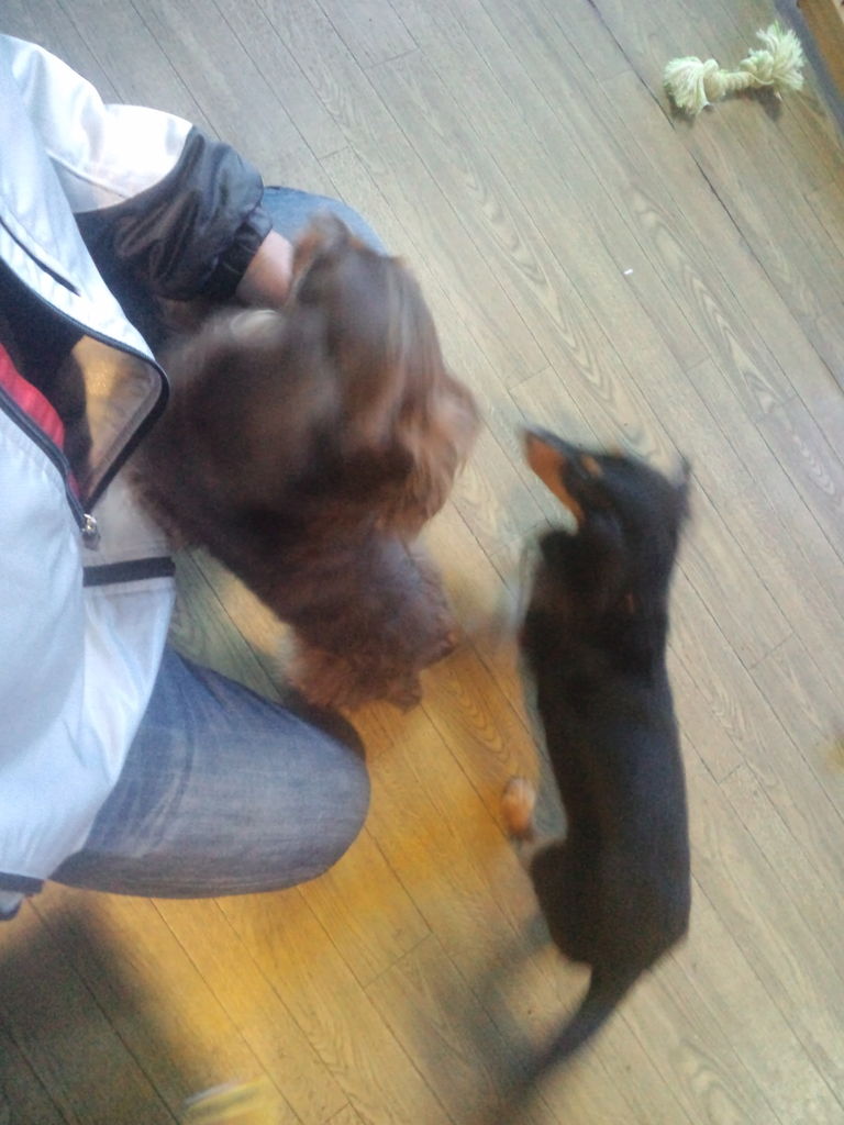 前にも来てくれたダックスちゃんズ、姫ちゃんとみるくちゃんがチェックインしました。