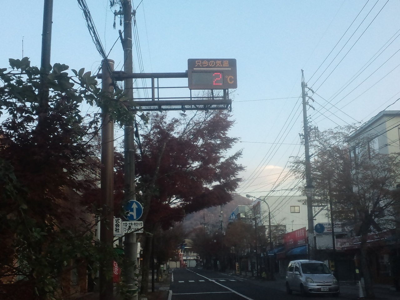 今朝の軽井沢の気温は2℃、天気は晴れてます。
