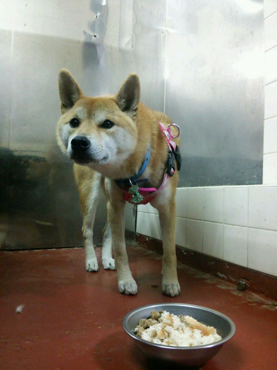 長期お預かり柴犬ハチくん少しだけ食べました。
