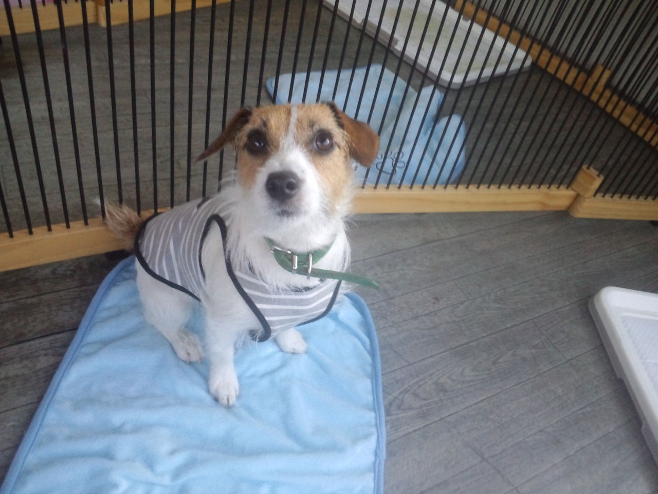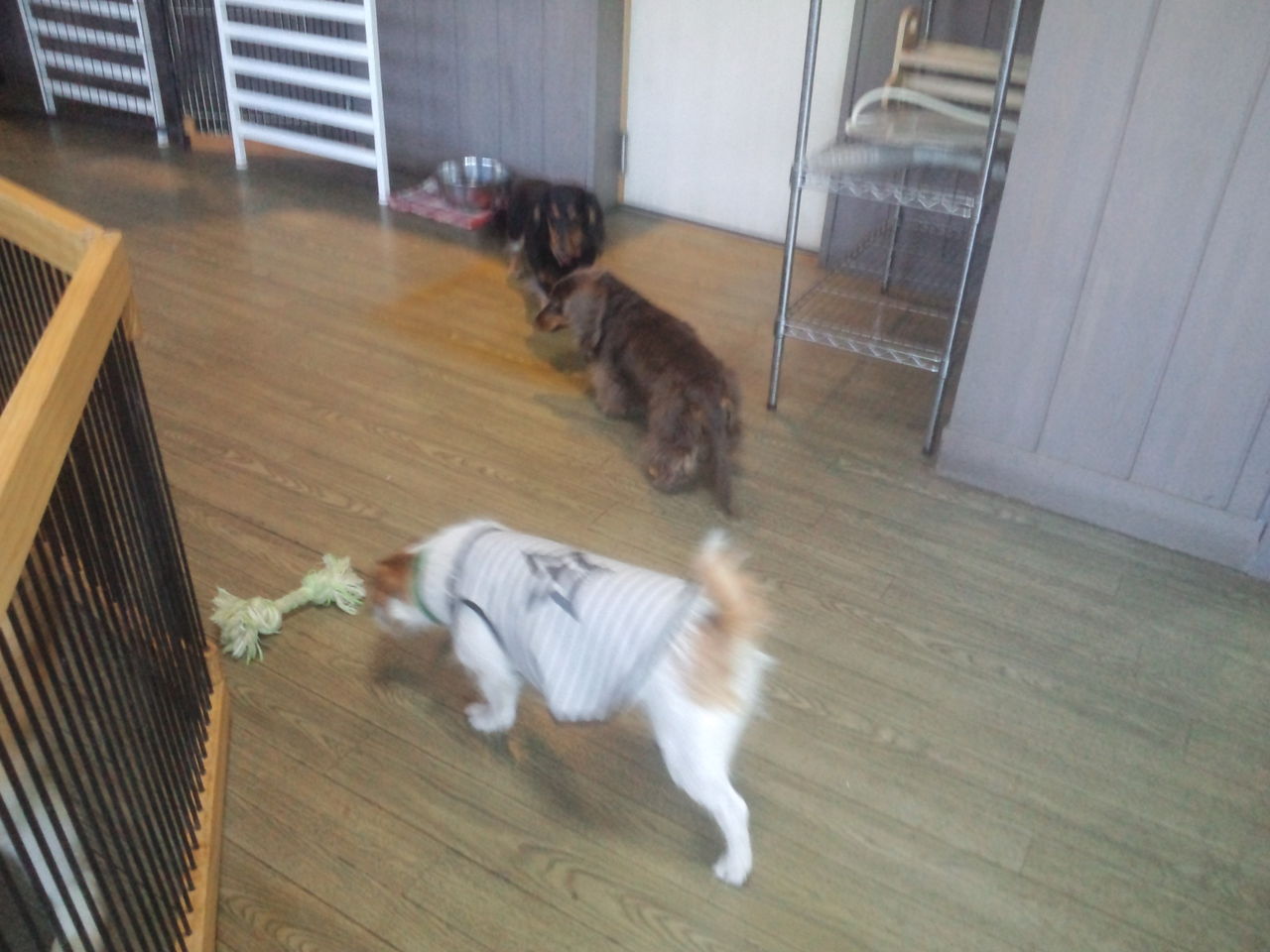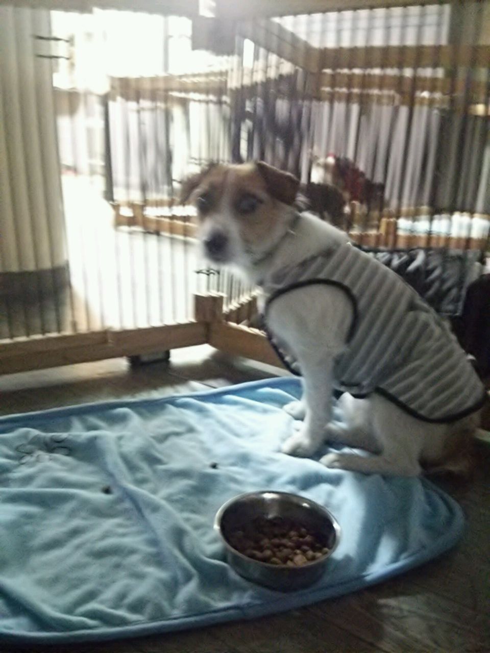 ジャックラッセルのキララちゃんがチェックインしました。 少し寂しがりましたが、サークルから出て他のワンコ達とも仲良く出来てます。 キララちゃんも抱っこをせがんで来ますね。
