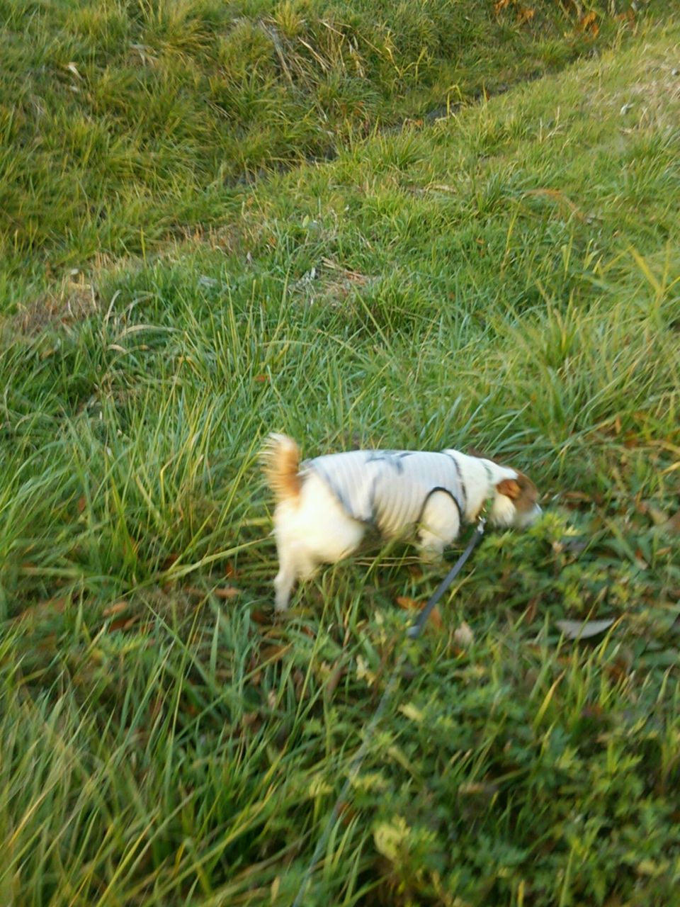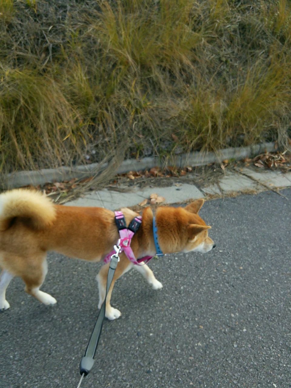 楽しそうにあるいてくれるのでお散歩の行き甲斐があります♪ 今日は草むらで遊びました♪