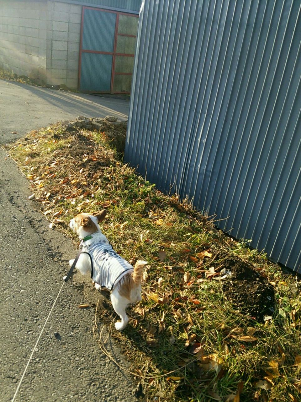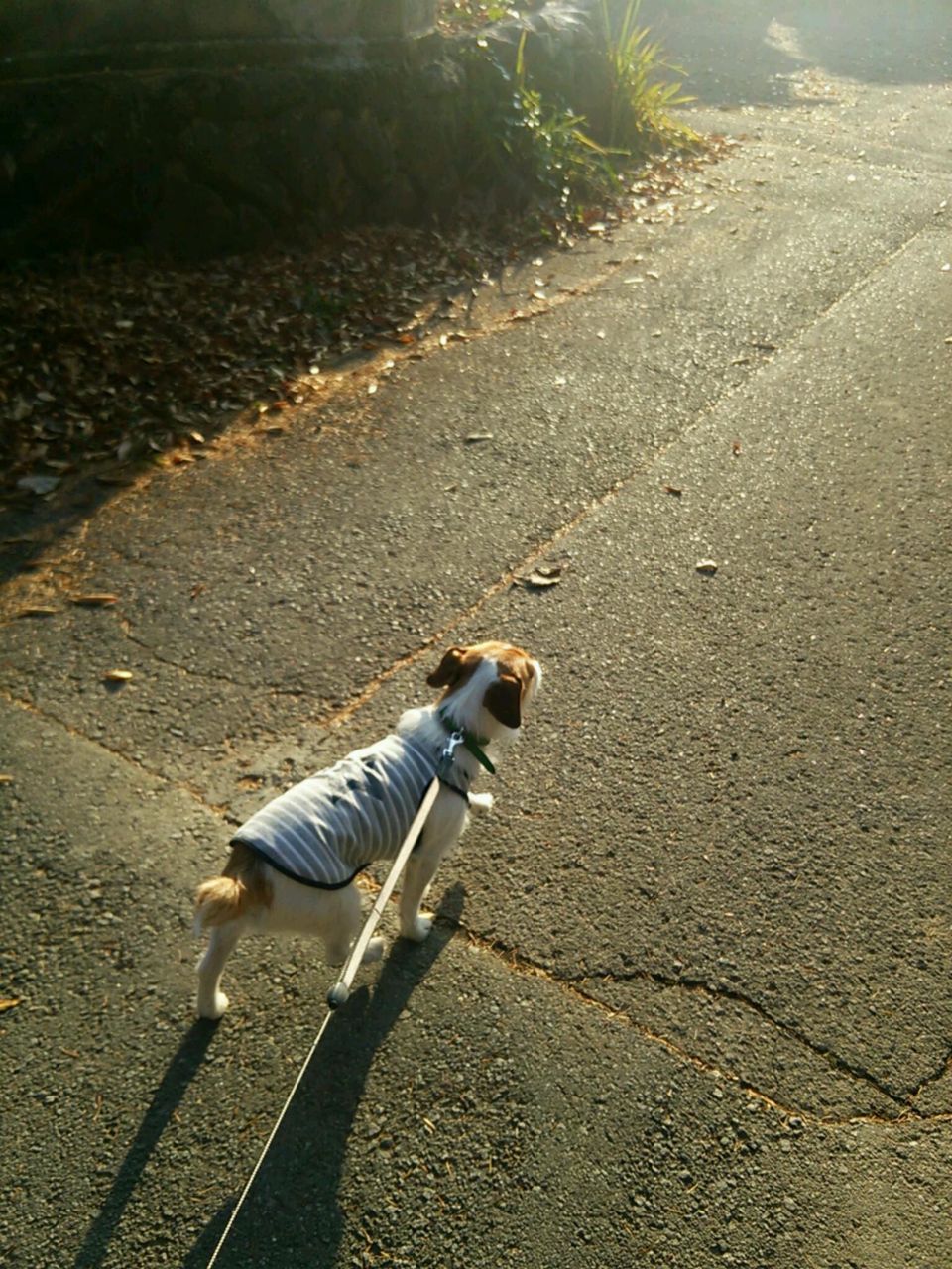 今朝は風が冷たいです。 草をたくさんクンクンしながらお散歩してきました。