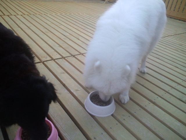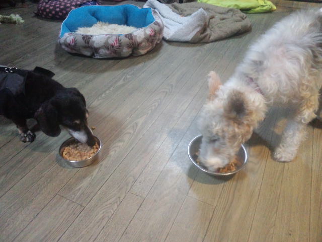 老犬ダックスロッキー君とワイヤーロビン君、しっかり完食しました。