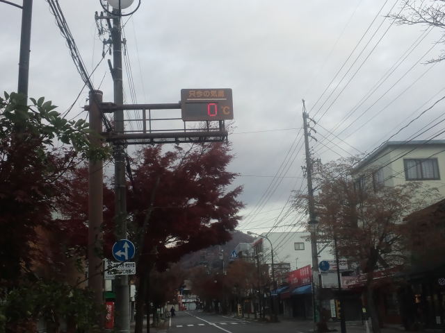 今朝の軽井沢の気温は0℃、天気は曇り空です。