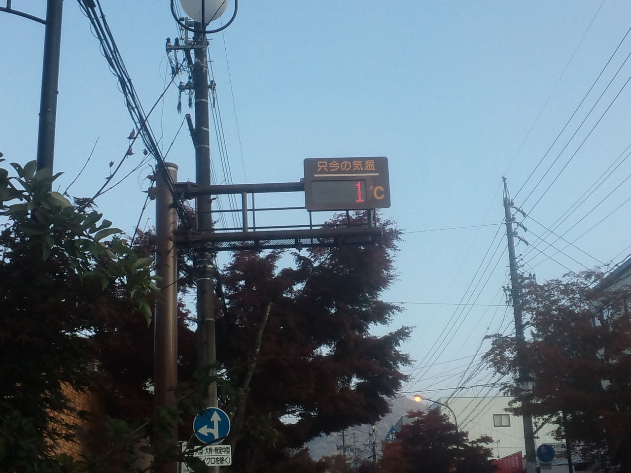 今朝の軽井沢の気温は1℃、天気は気持ちいい秋晴れです。