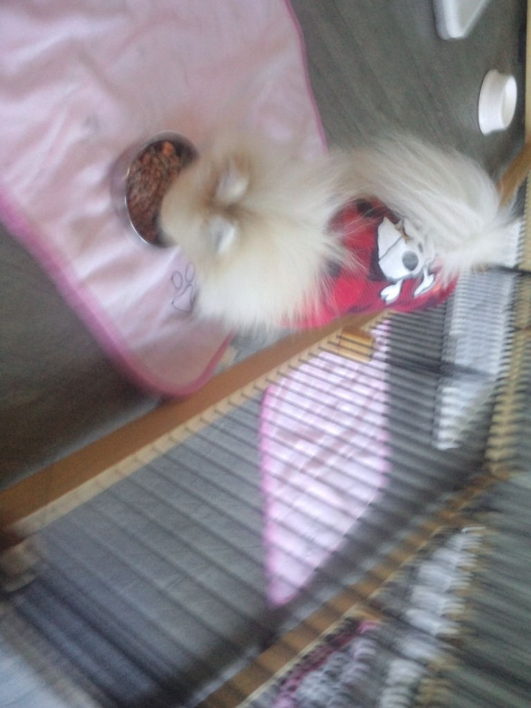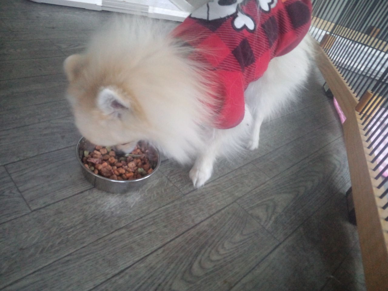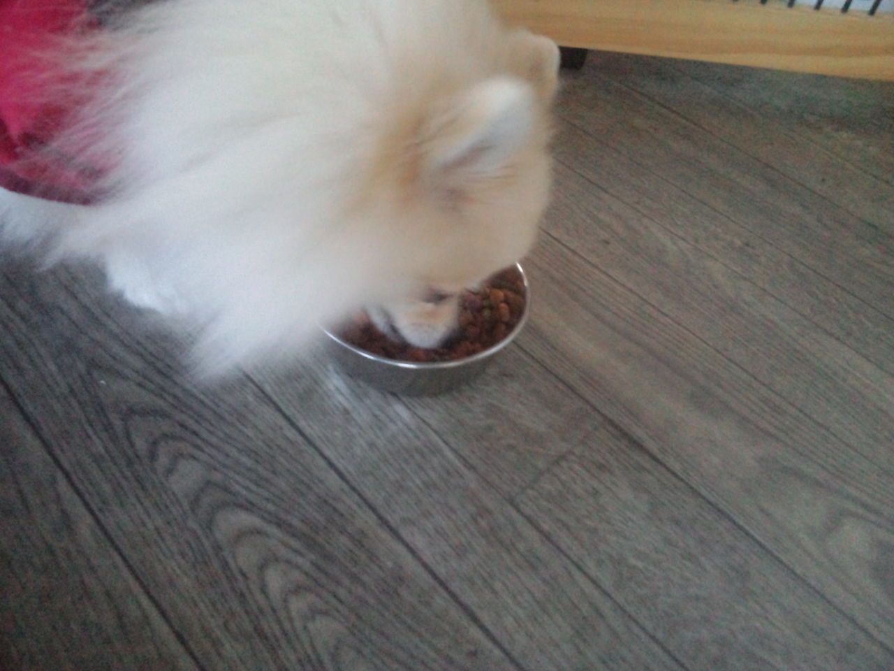 ポメラニアンりんく君、少し食べただけでひっくり返してしまいます。
