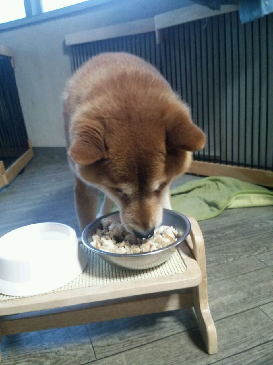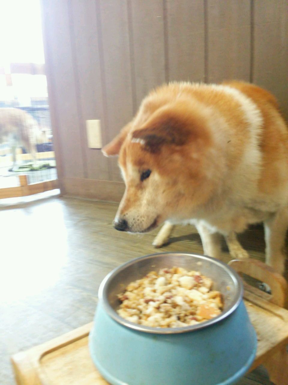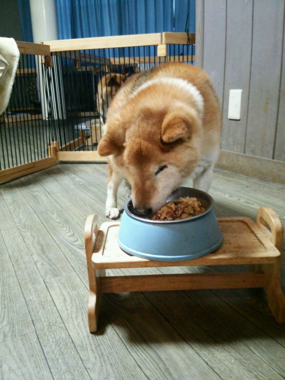 生涯お預かり柴犬兄タローくんゆっくり少しずつ食べています。