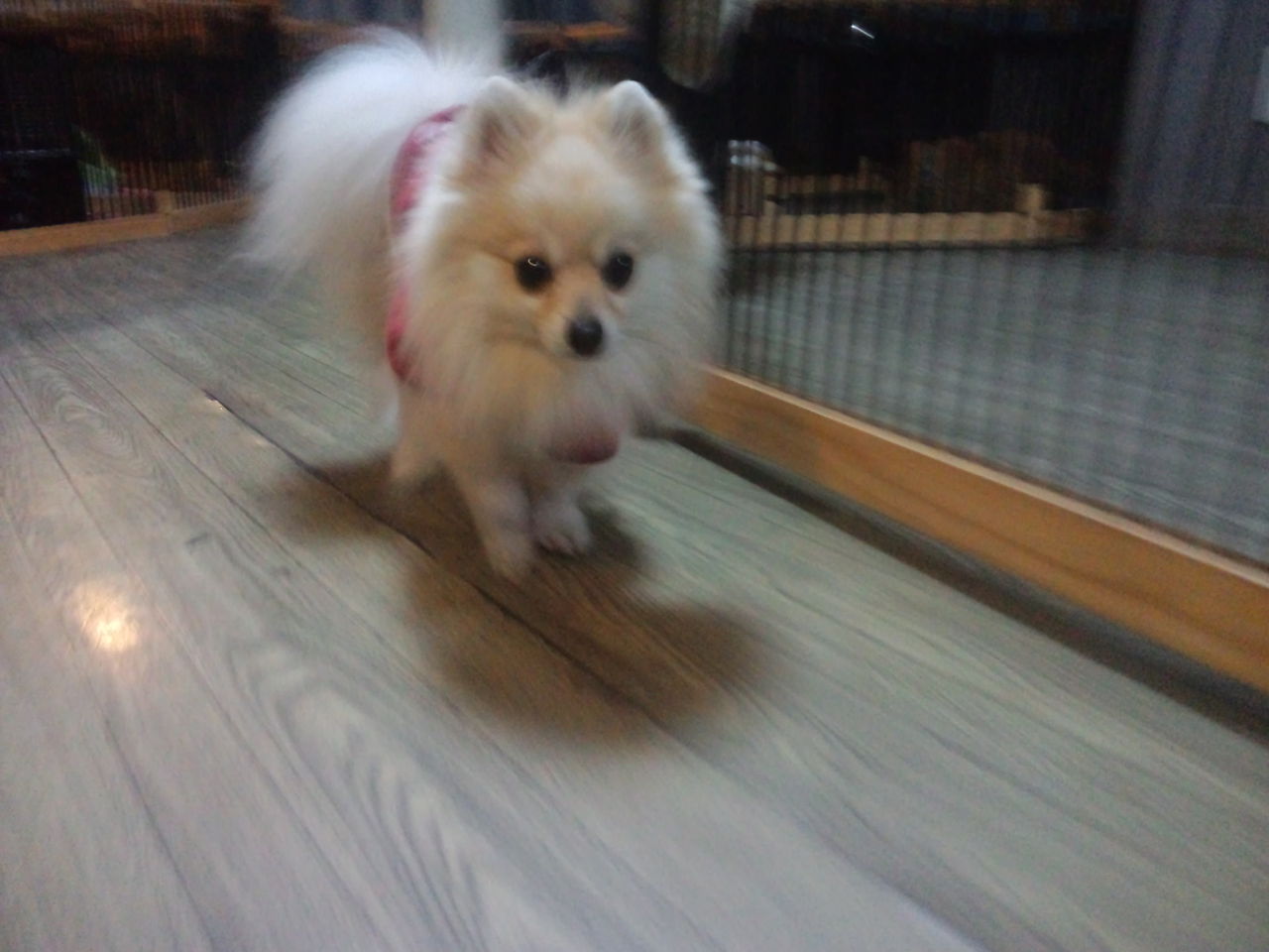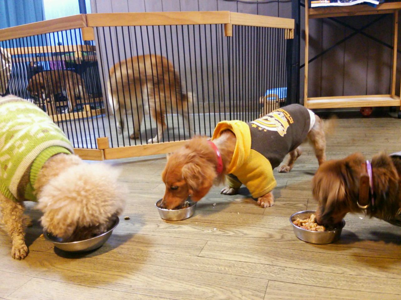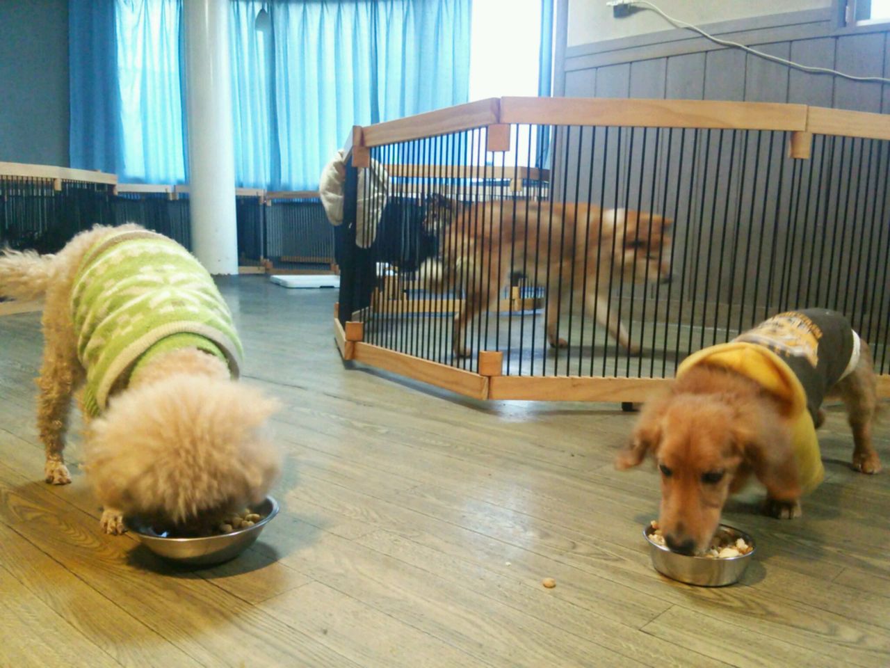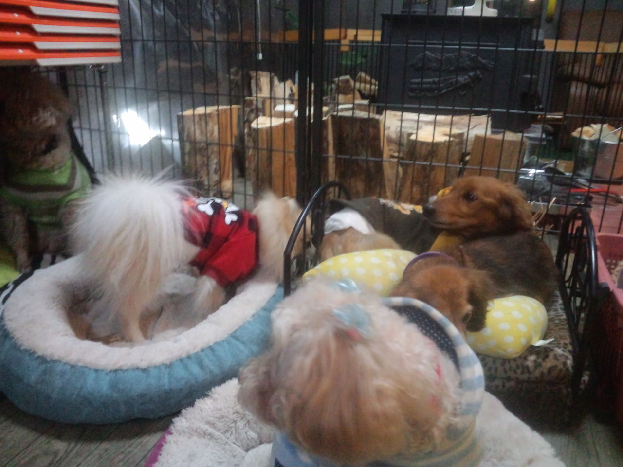 飼い主さんが居なくなっても別に寂しがらず動じず、店内の匂いチェックをしてから他のワンコ達に溶け込んでます。