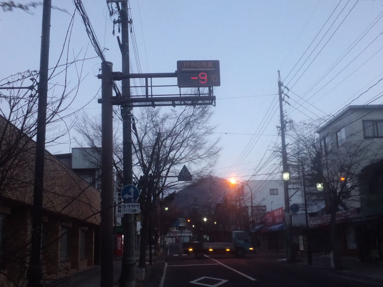今朝の軽井沢の気温はマイナス9℃、天気は晴れてます。