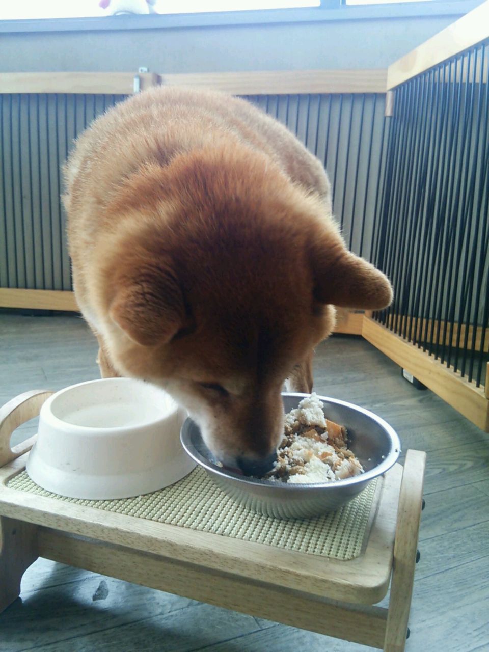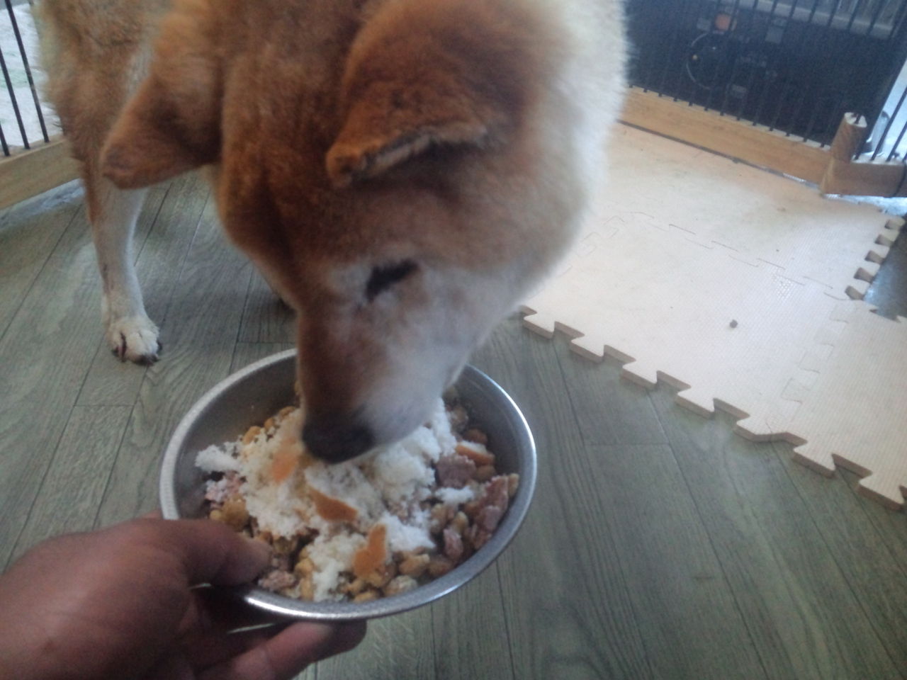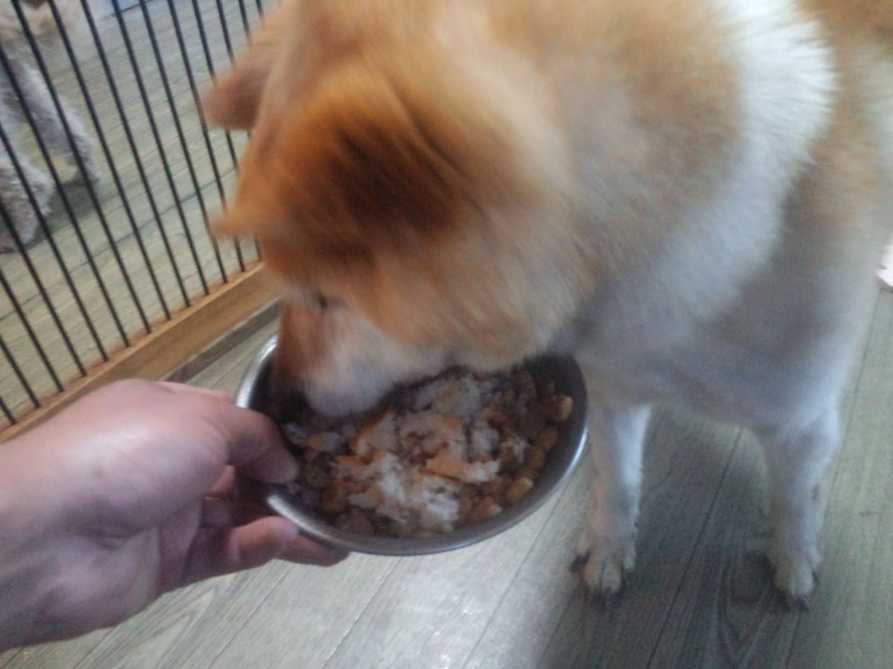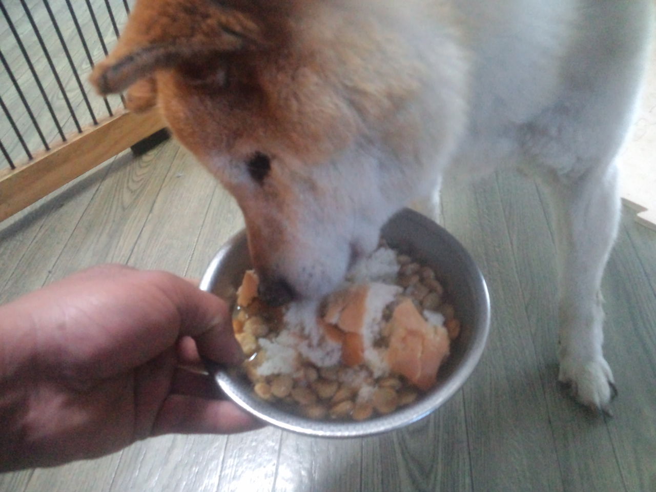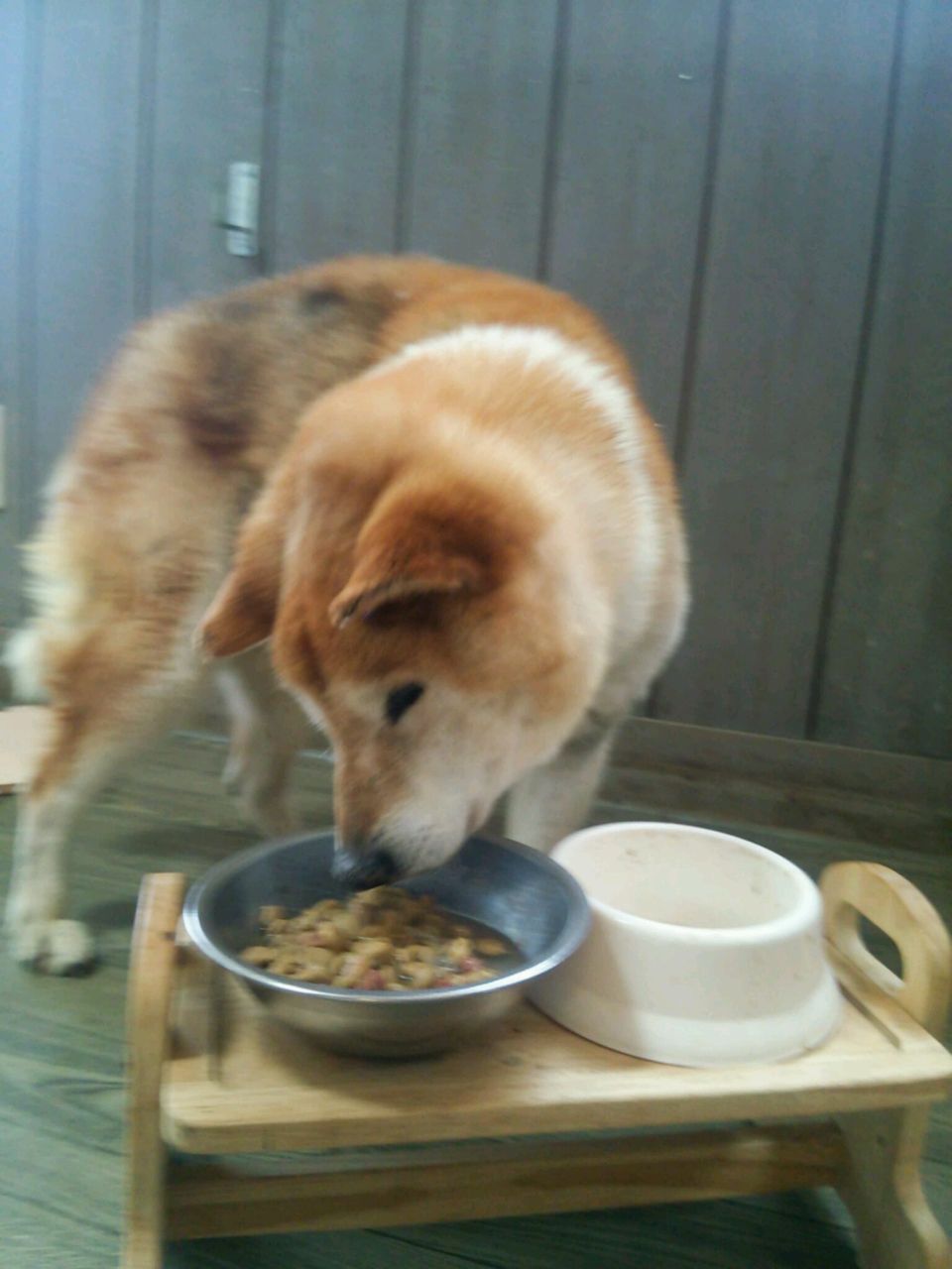 生涯お預かり柴犬兄タローくんゆっくり少しずつ食べています。