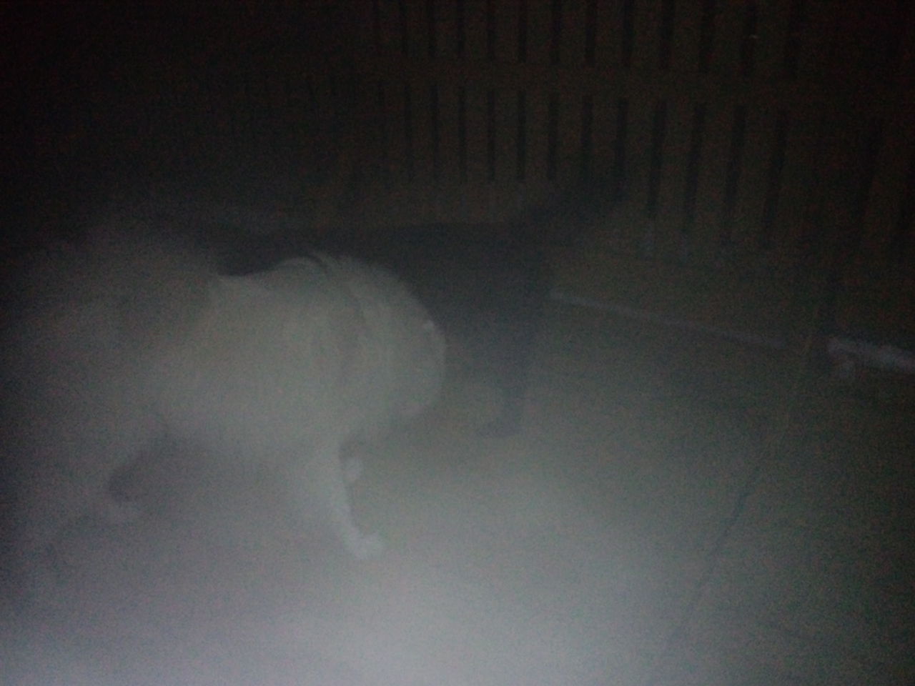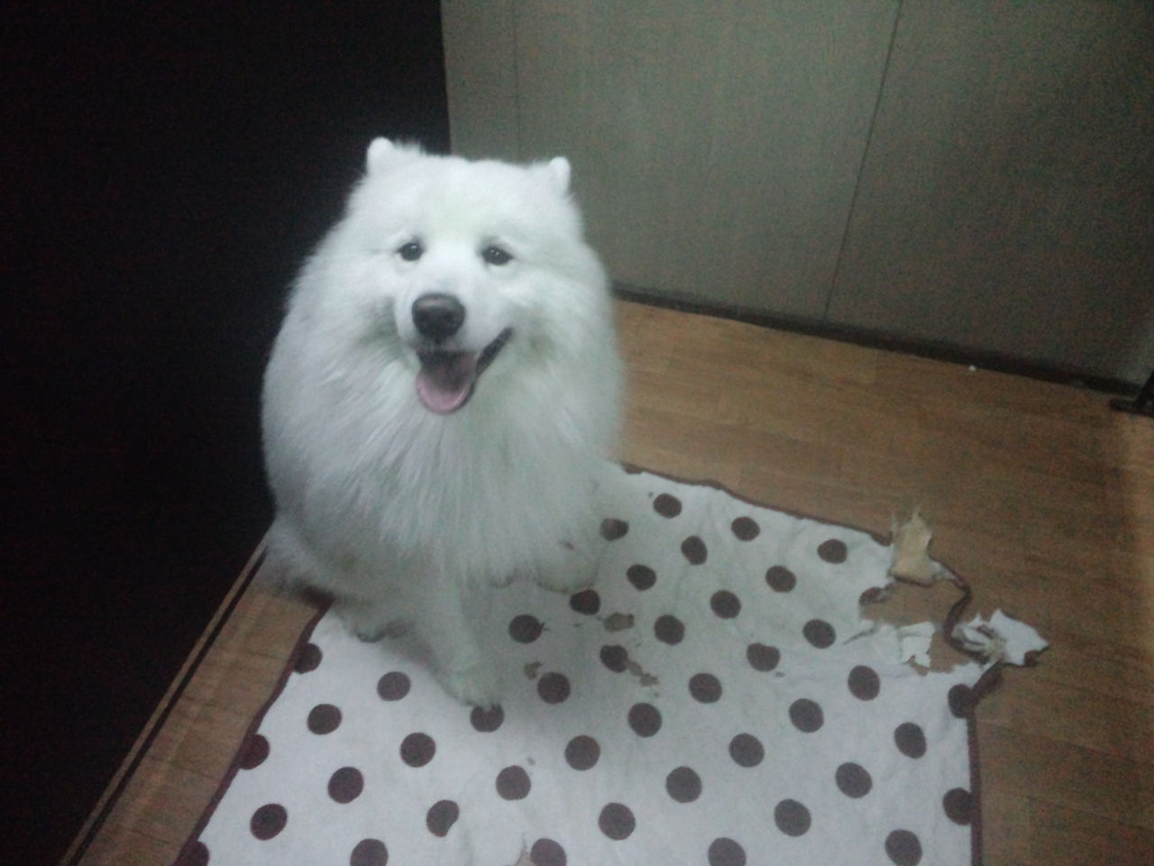 なかなか犬舎に入ってくれず、デッキを元気に走り回ってます。いくら今日は幾らか暖かいとは言えマイナス3℃くらい?やはり寒さに強いサモエドですね。後で強制的に犬舎に入って貰いましょう