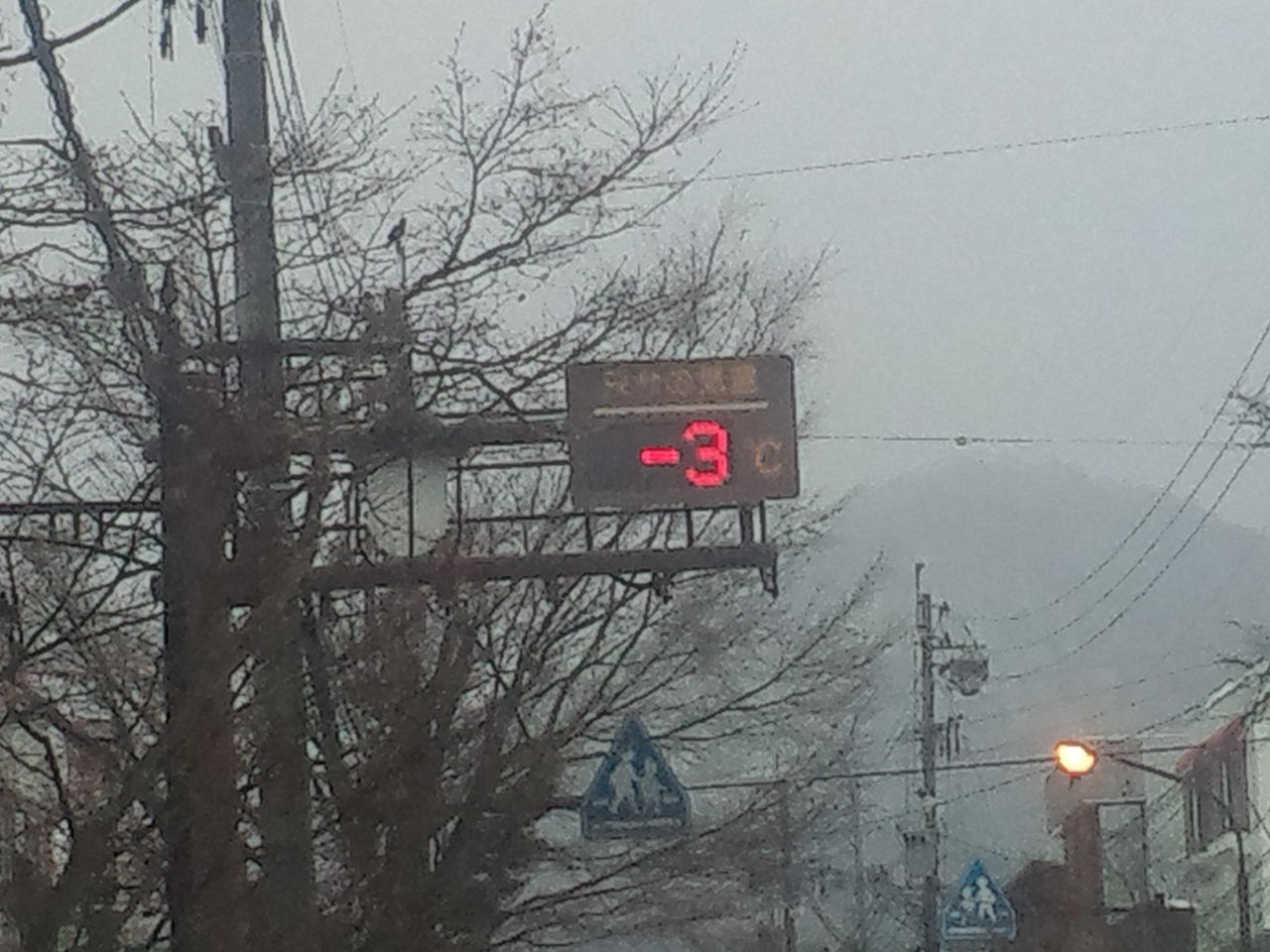 今朝の軽井沢の気温はマイナス3℃、天気は曇り空です。