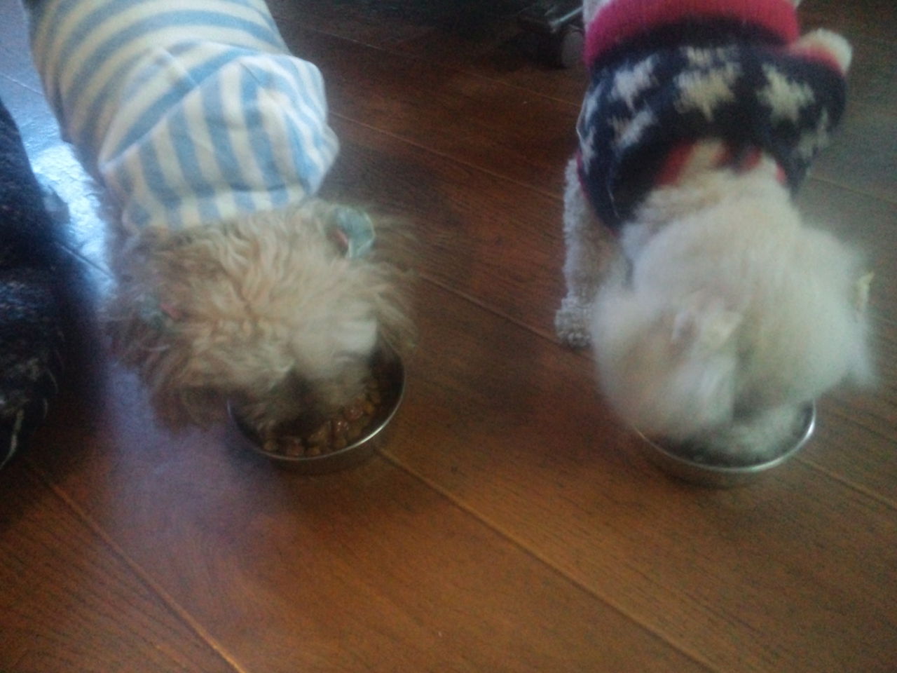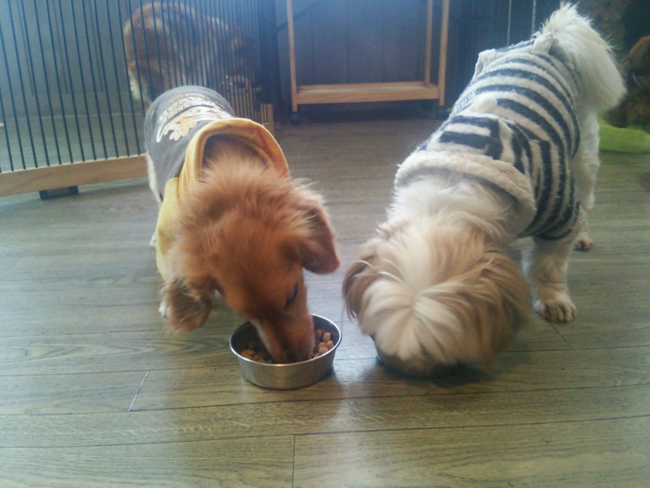 シーズーラッキー君と長期預かりトイプーゆずちゃん、しっかり完食しました。