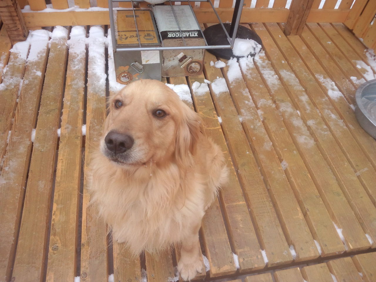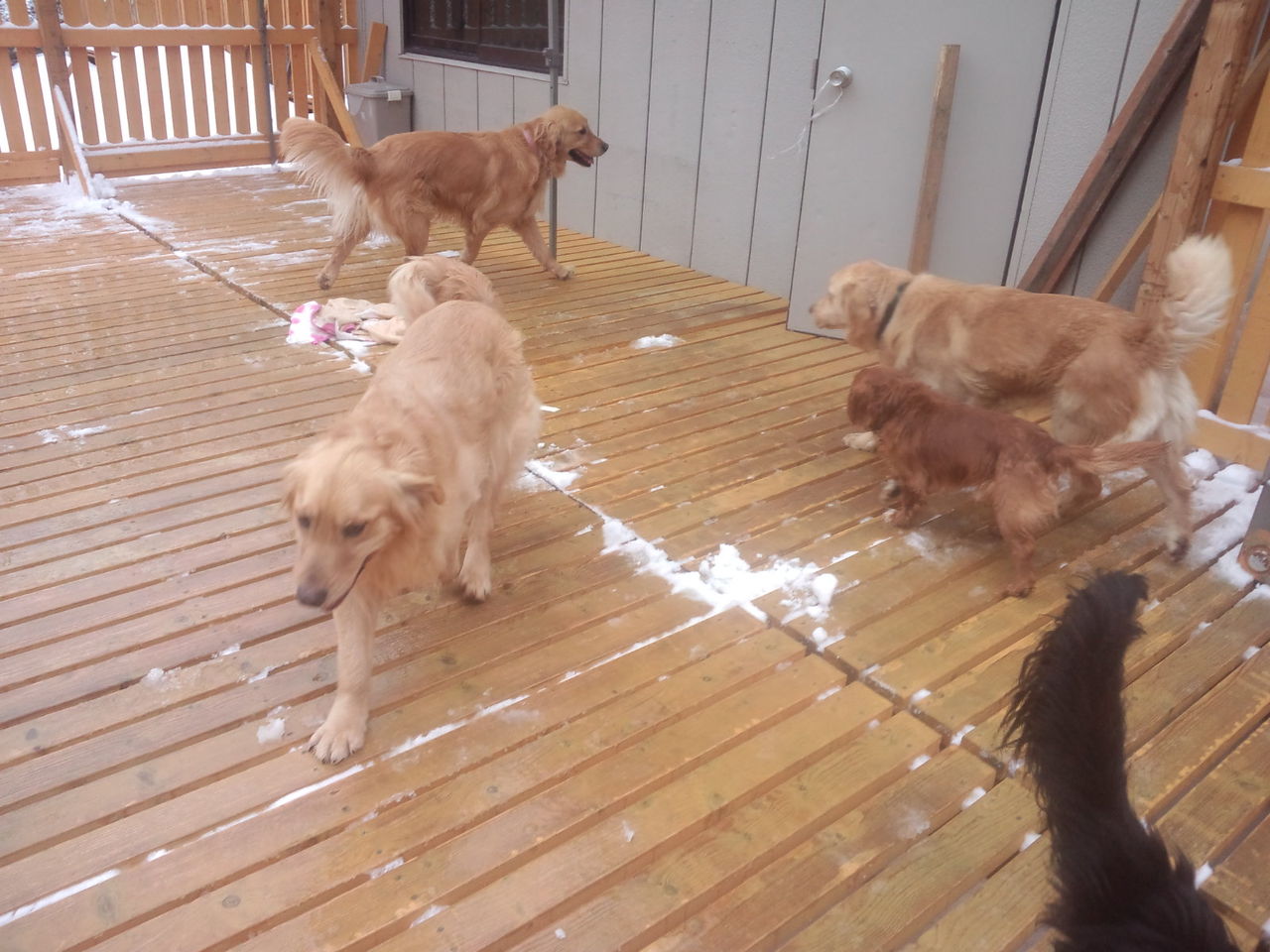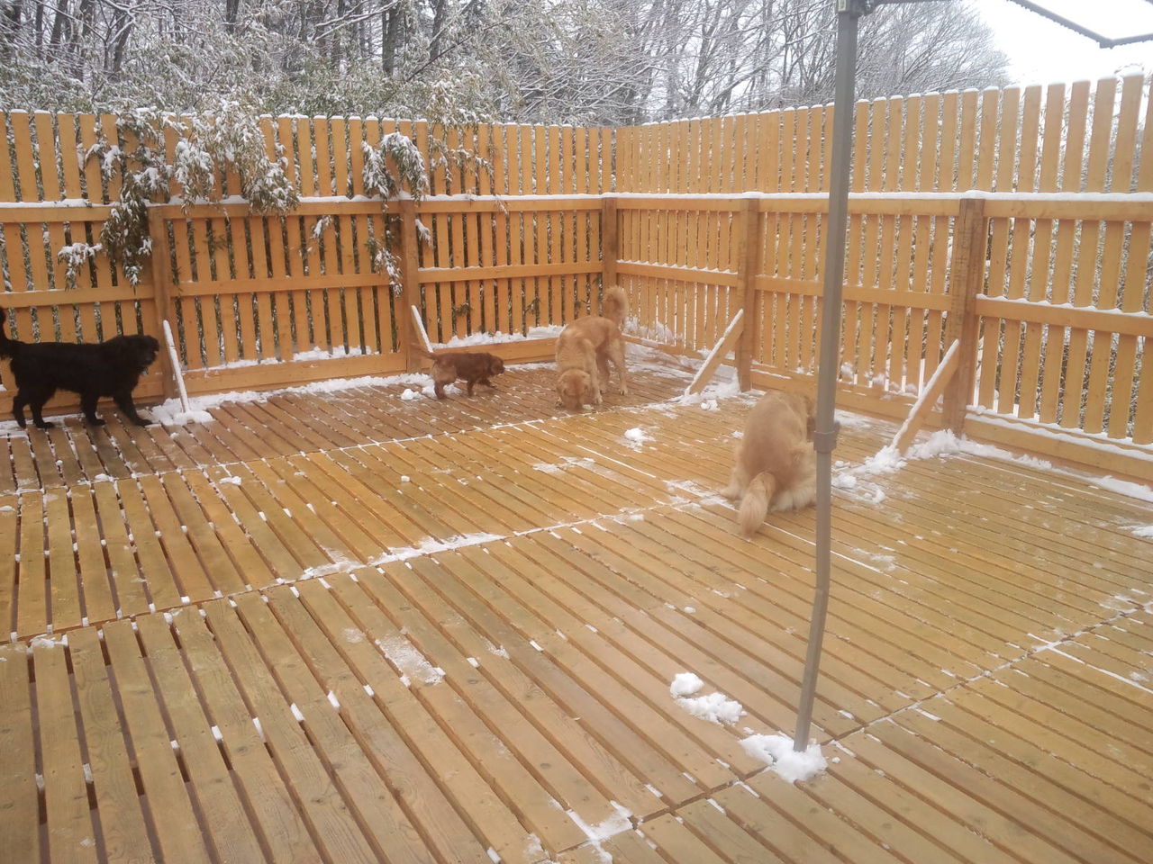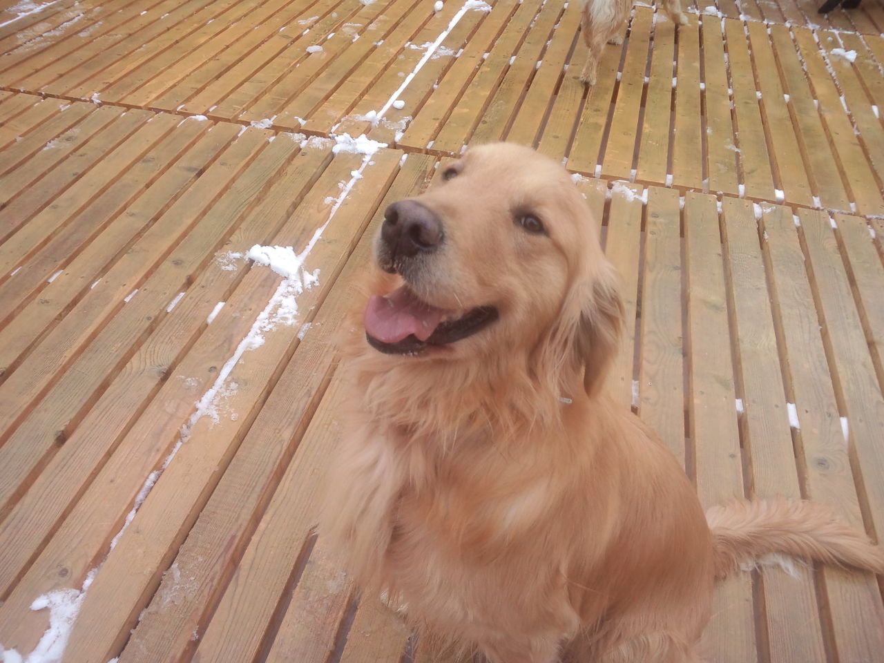 デッキを臭い付けで走り回ってます。ゴールデンレンが嬉しくてはしゃぎ回ってます。