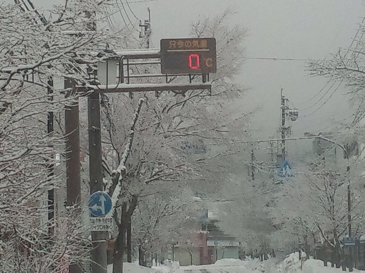 今朝の軽井沢の気温は0℃、天気は雪が止んできました。積雪は2~3サンセンチ?くらいです。