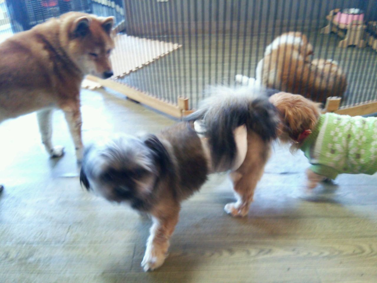 毎回の事ですが、ダウくんは寂しがって鳴いたりをまったくしないダウくんにはいつも感心しています。 ミニピンルーチェちゃんともすぐに仲良しです♪