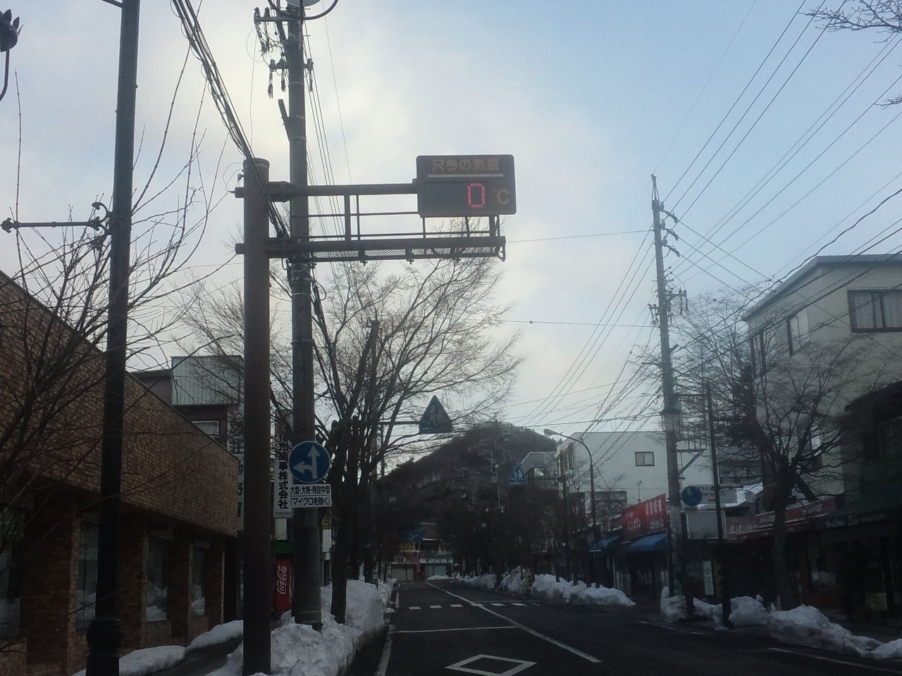 今朝の軽井沢の気温は0℃、天気は晴れ間が見えてきました。