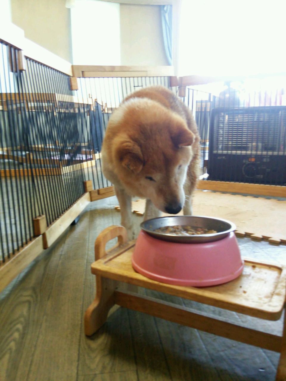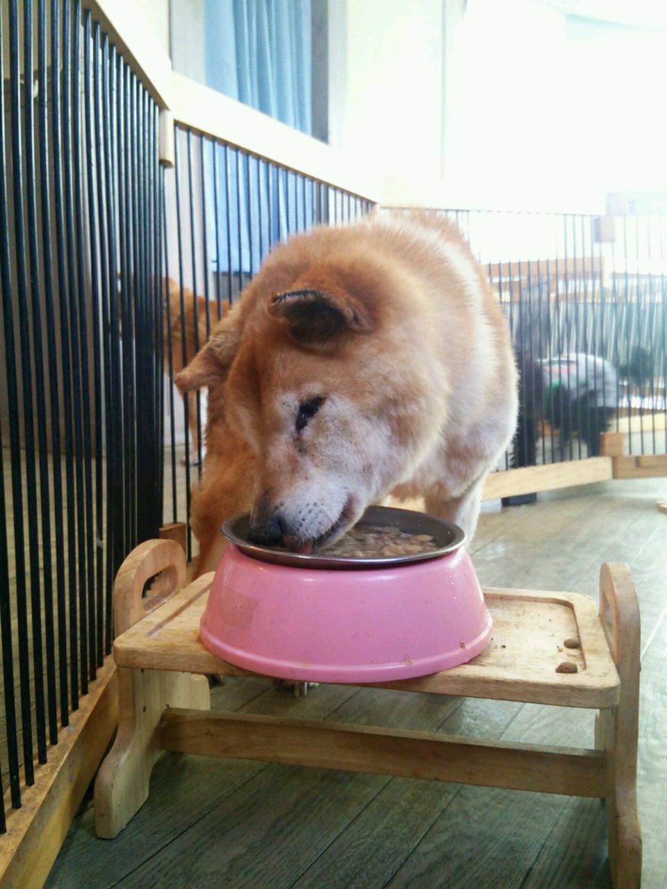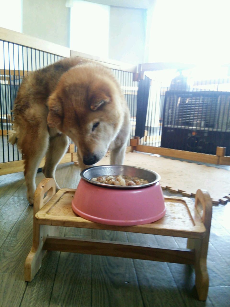 生涯お預かり柴犬兄タローくんゆっくり食べています。
