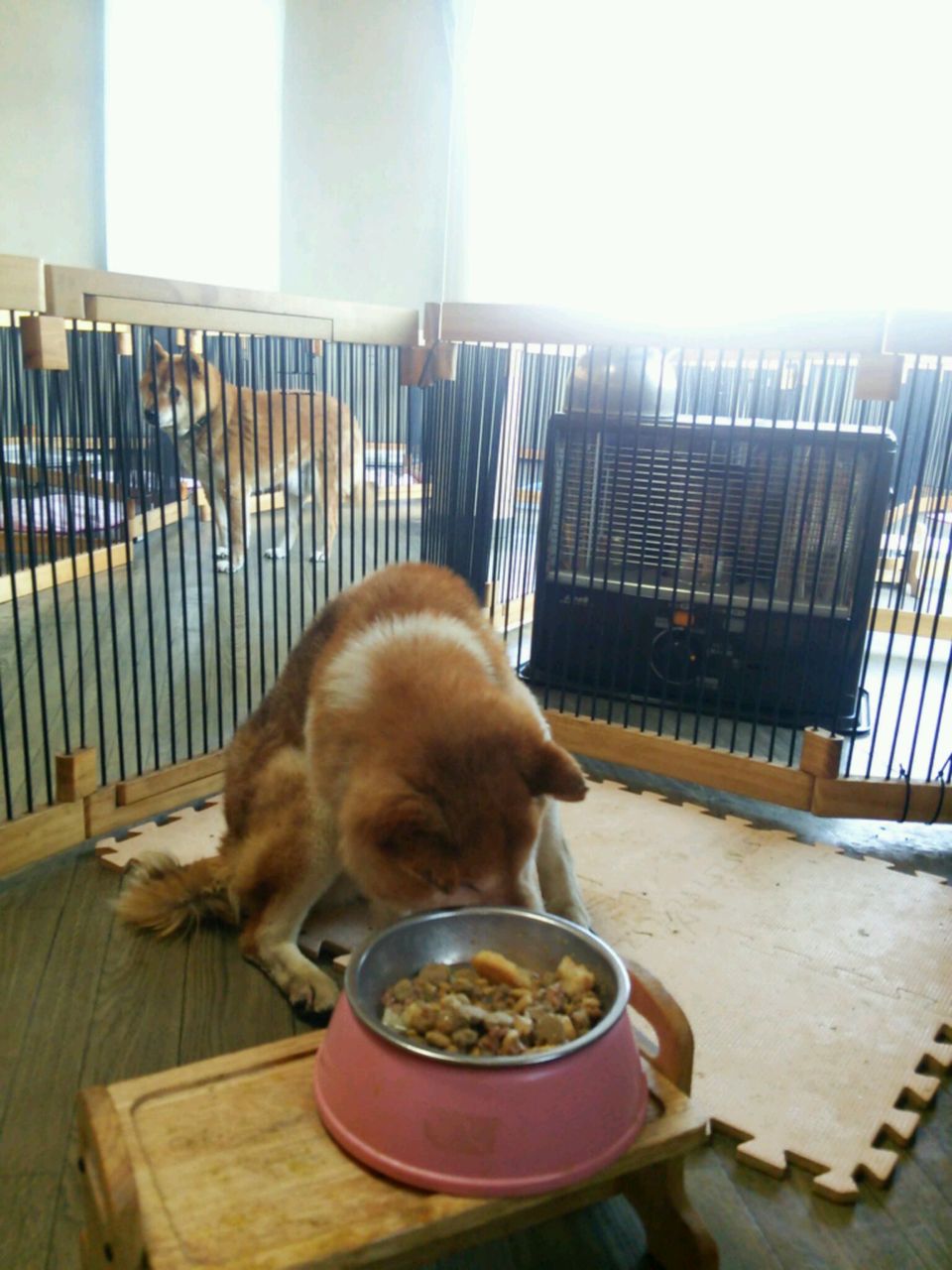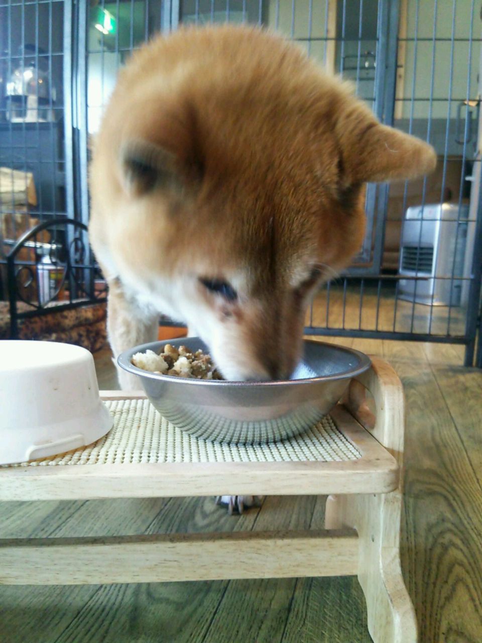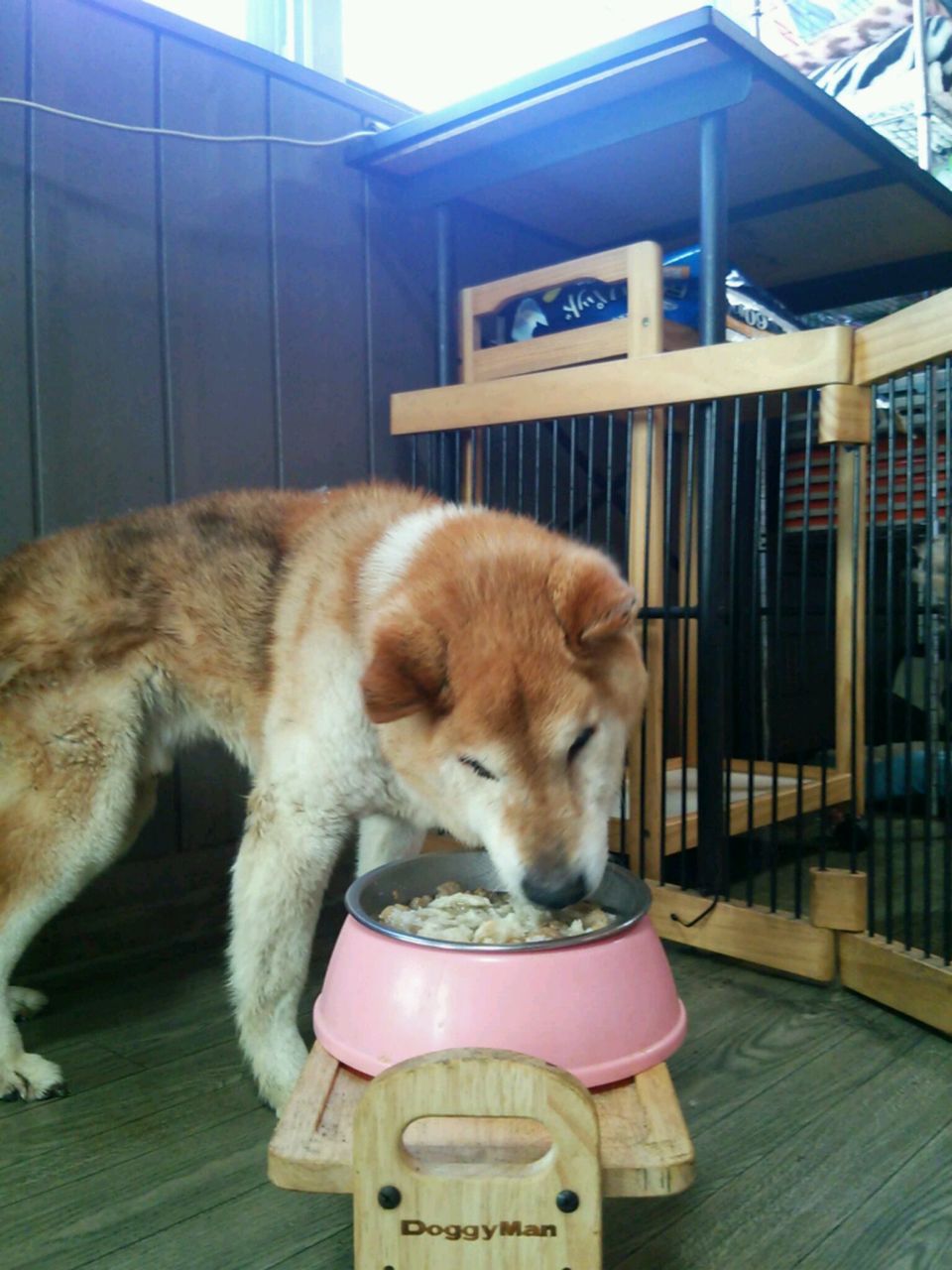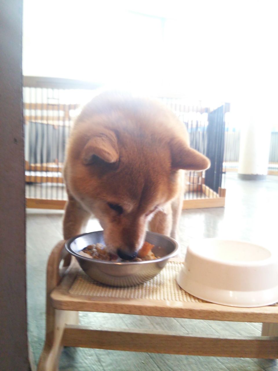 生涯お預かり柴犬兄タローくんゆっくり食べています。