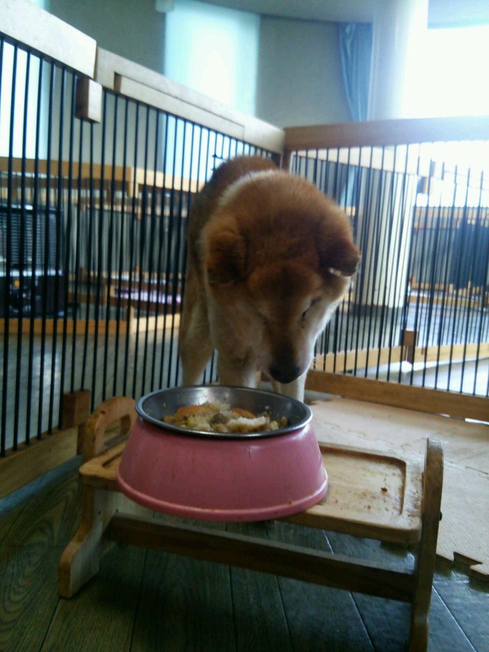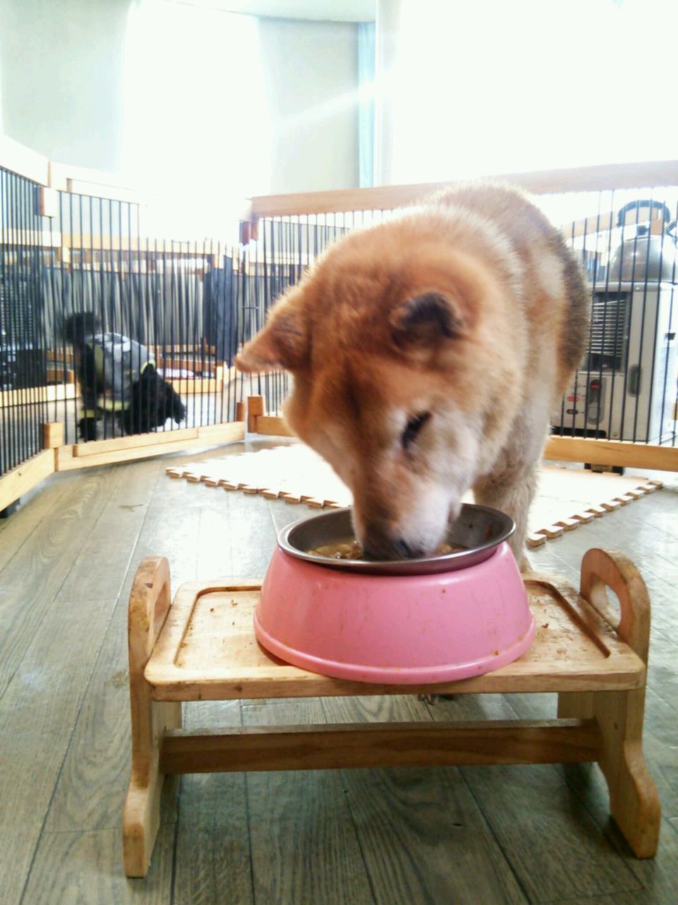生涯お預かり柴犬タローくんゆっくり食べています。