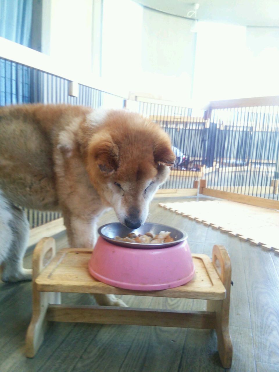 生涯お預かり柴犬タローくんゆっくり少しずつ食べています。
