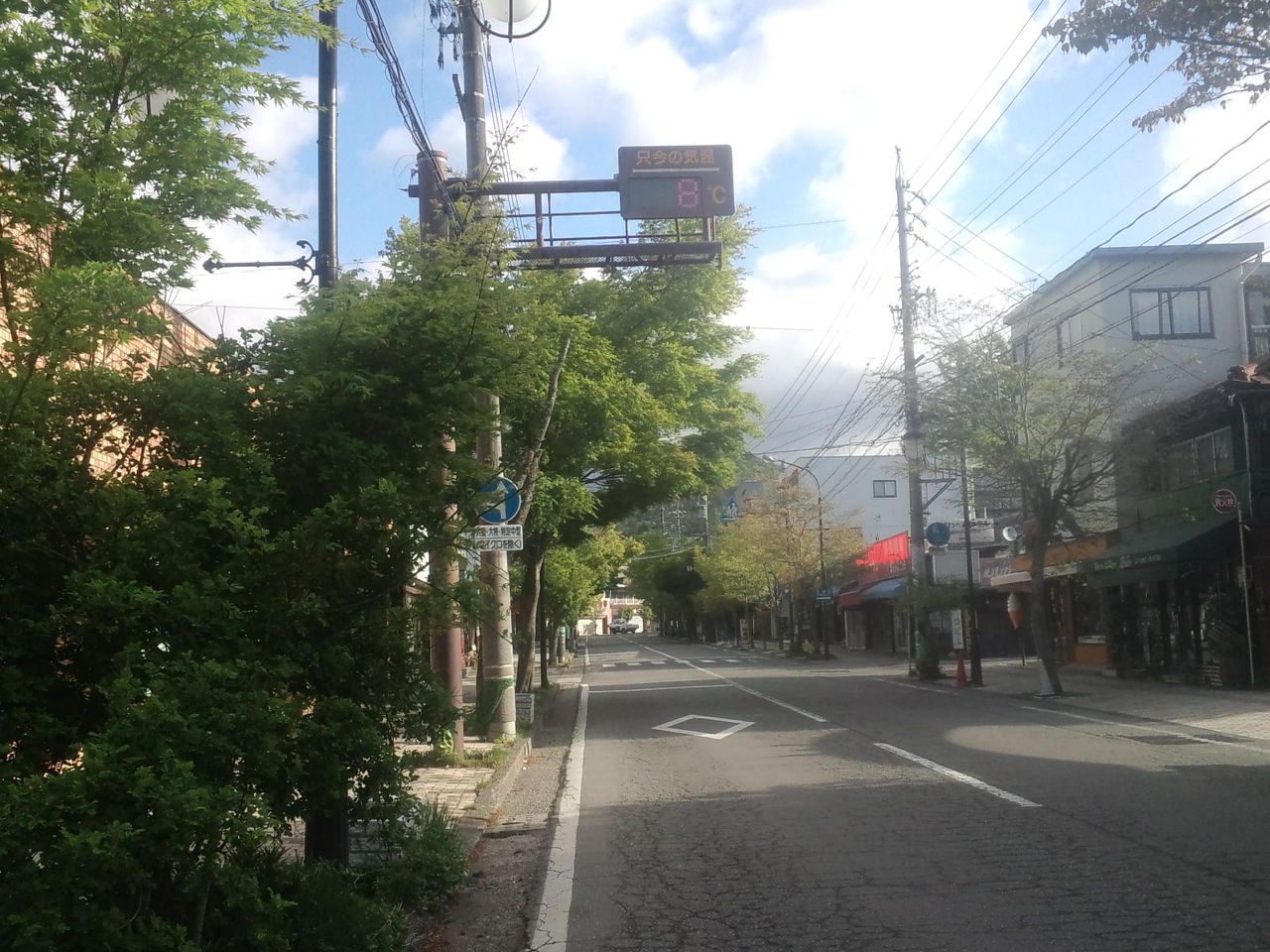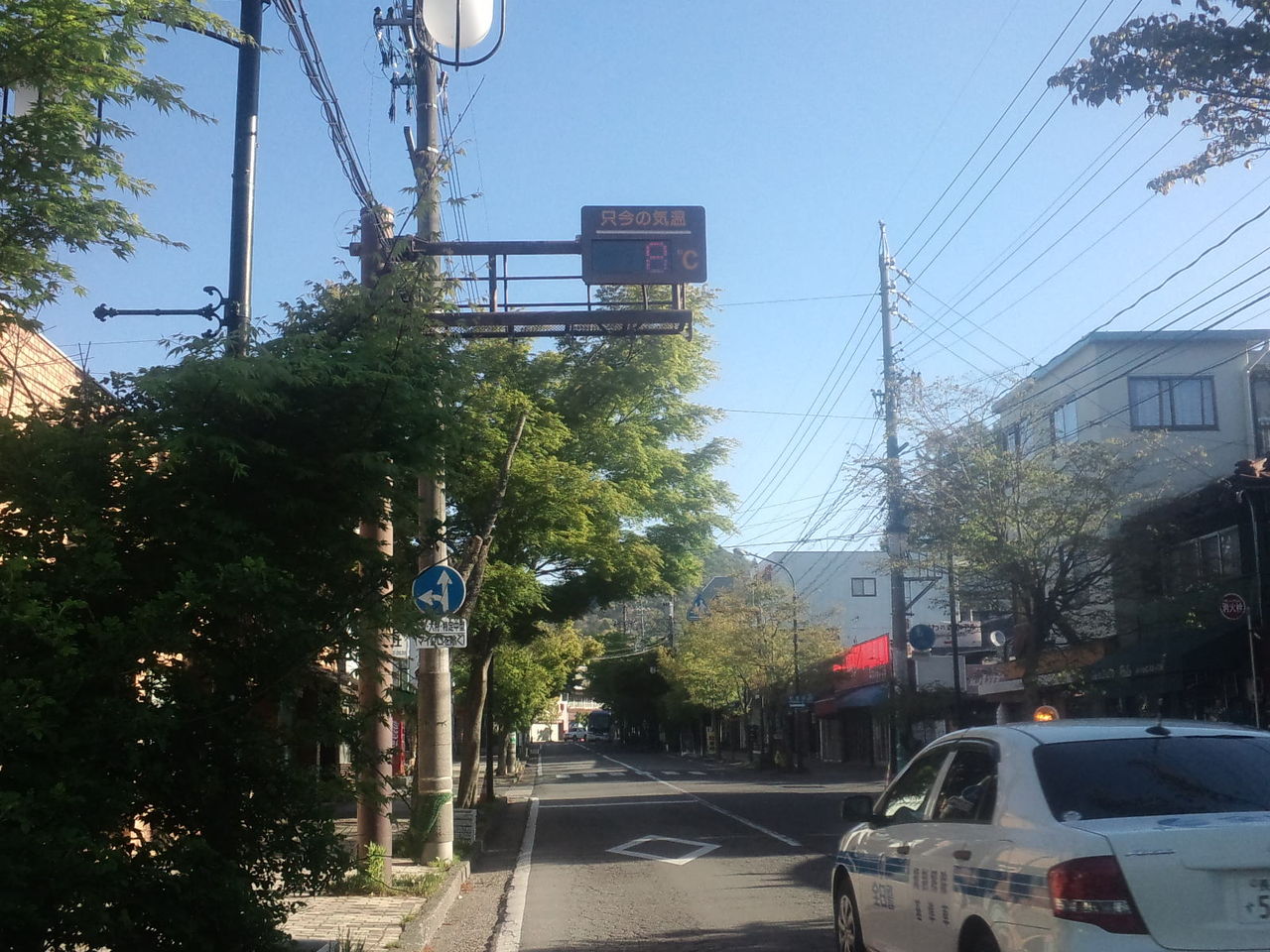 今朝の軽井沢の気温は8℃、天気は晴れてます。