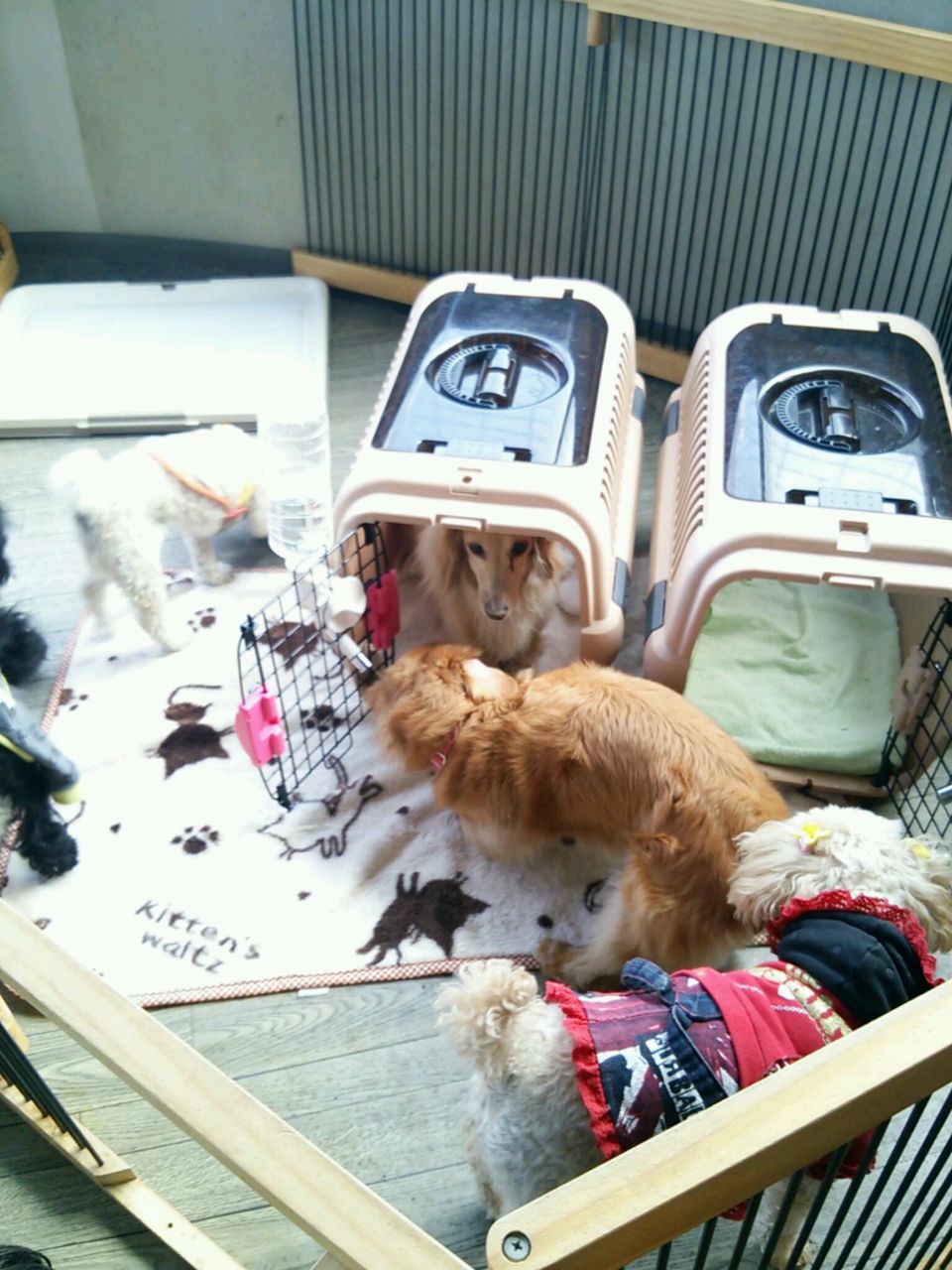 半年振りくらいの為、少し緊張しているようでみんなと挨拶したらクレートに戻ってしまいました。 ストレスにならないようにそのままにしておきます。