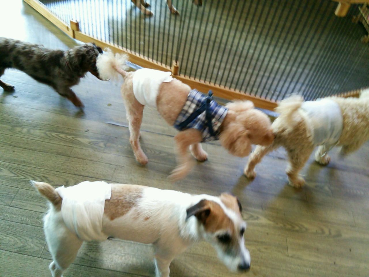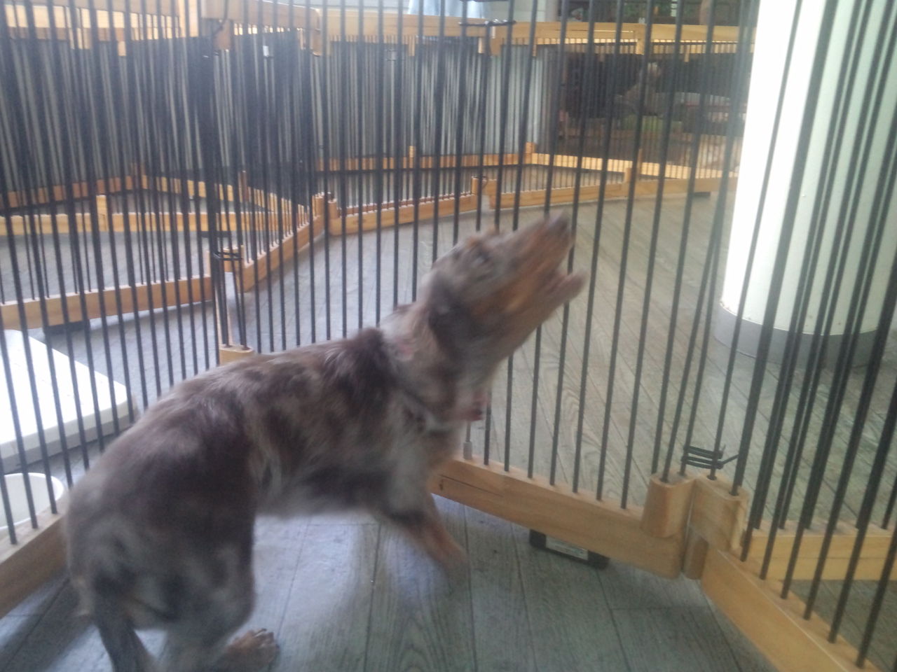 サークルから出せと騒いでましたが、出したら意外と他のワンコとも平気そうです。仲良く遊ぶって感じではないですが、ストレスにもなってないかな?って感じです。