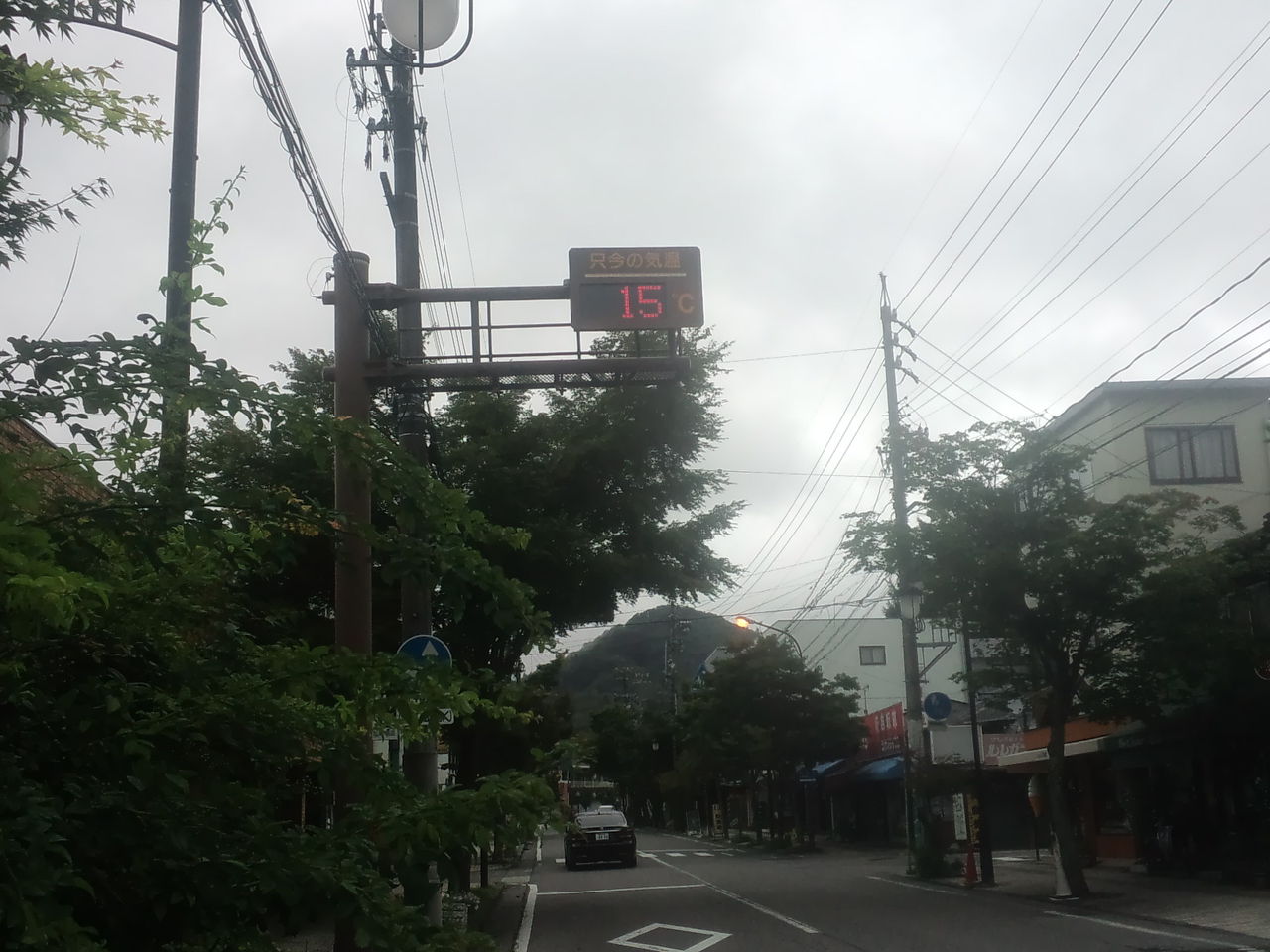 今朝の軽井沢の気温は15℃。天気は曇り空です。