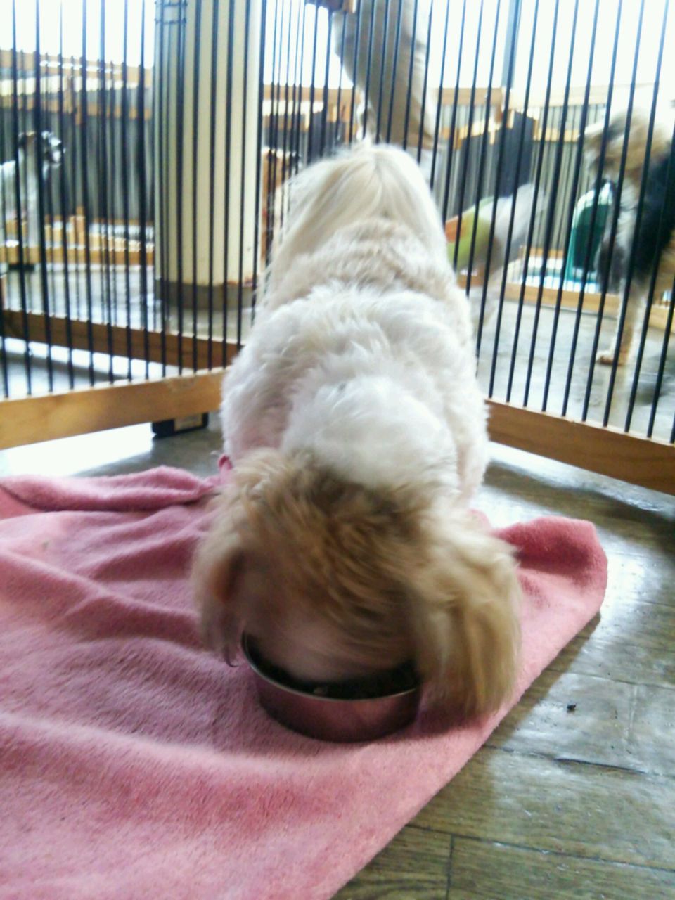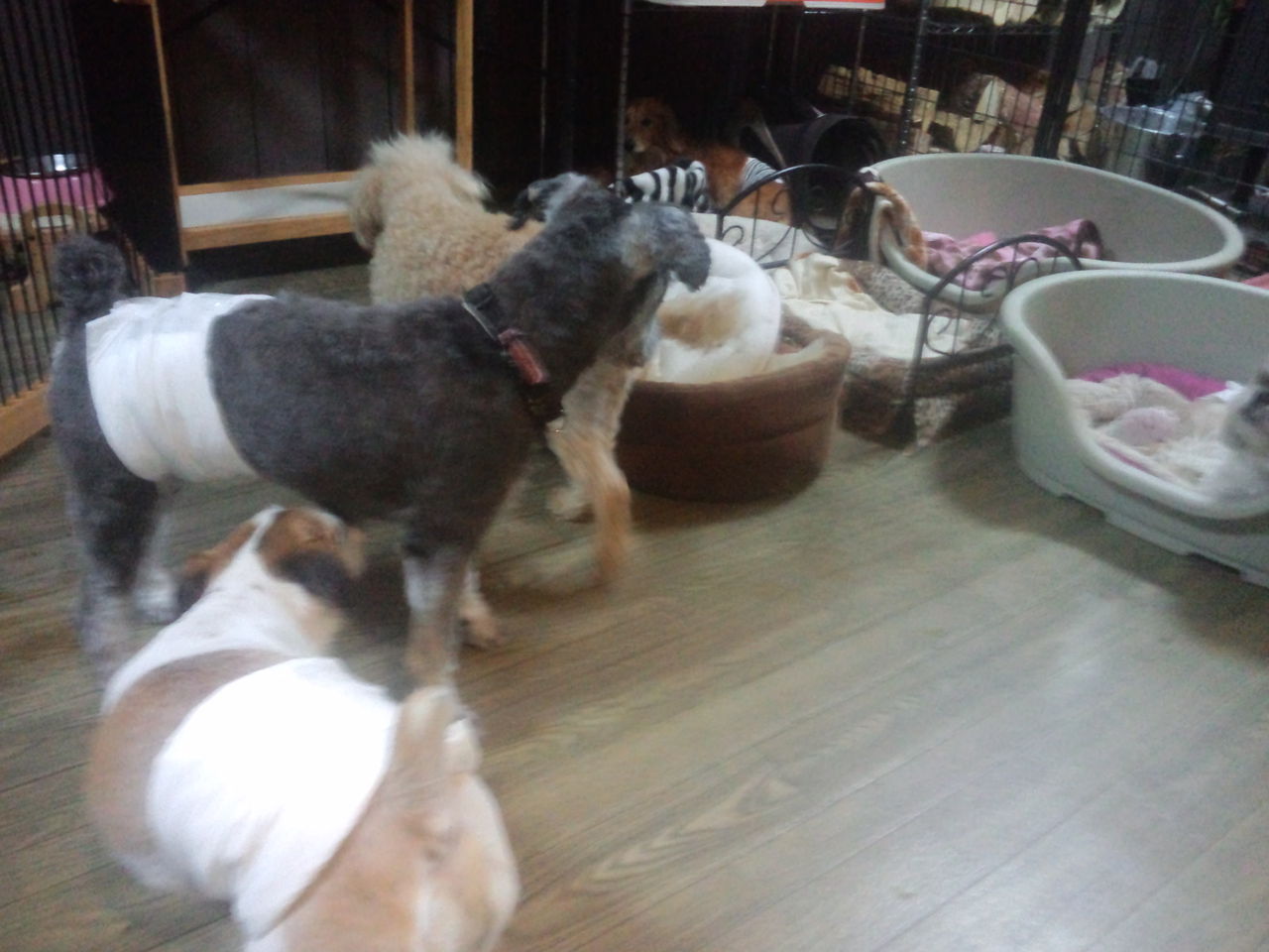 今回は小型犬エリアでお預かりです。久々なので匂いチェックに忙しいみたいですが、他のワンコ達とも仲良くしてます。
