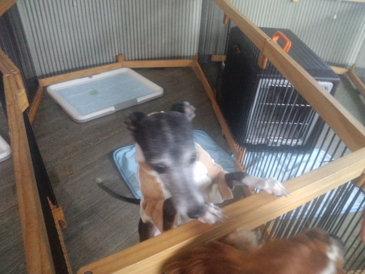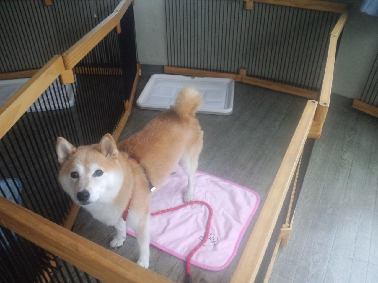 柴の凛ちゃんがチェックインしました。 今日はお試しの日帰りなのですが、サークルに入ったら静かにしています。