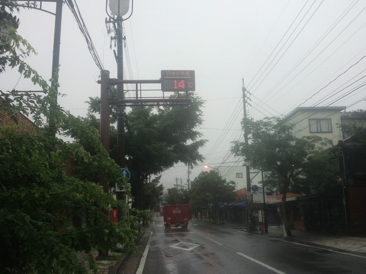 今朝の軽井沢の気温は14℃、少し肌寒いです。天気は雨降りです。
