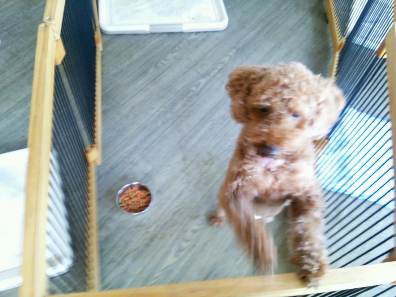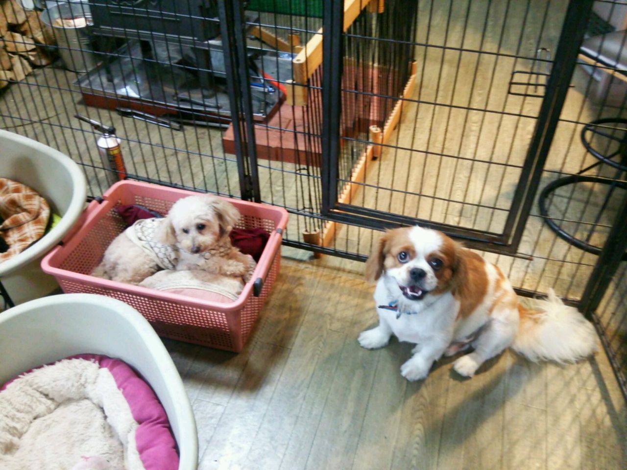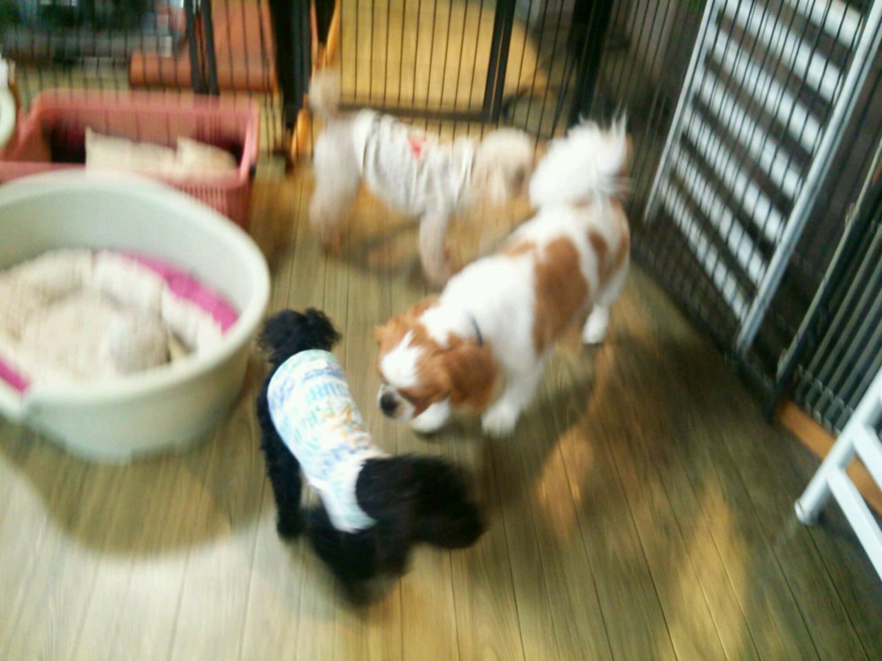 サークルから出たらすぐにトイプーマフィンくん、ベラちゃん、虎治郎にご挨拶です。 虎治郎のことを気に入ったのかずっとクンクンしています。