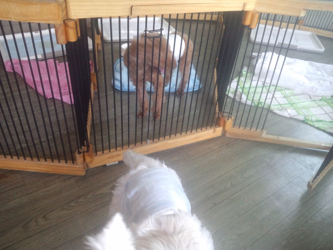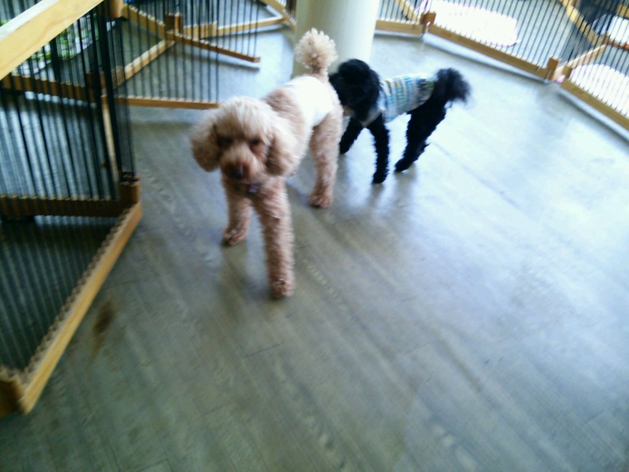 常連トイプーのマフィン君がチェックインしました。 サークル越しでも他のワンコが近寄ると緊張気味かな?
