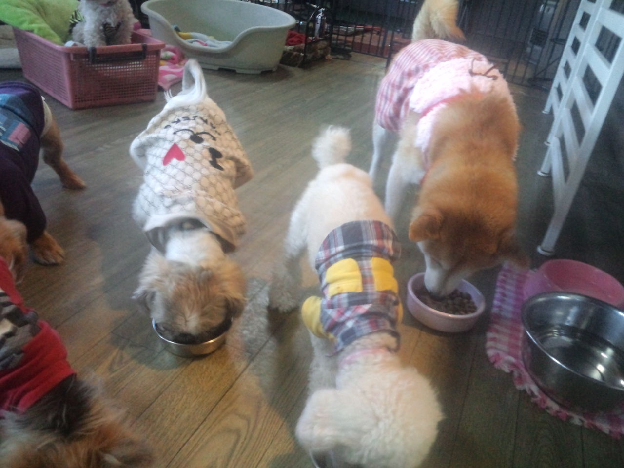 生涯預かりトイプーテディ君とベラちゃん、ヨーキーアイちゃんとシーズーココ君、柴凛ちゃん、しっかり完食しました。