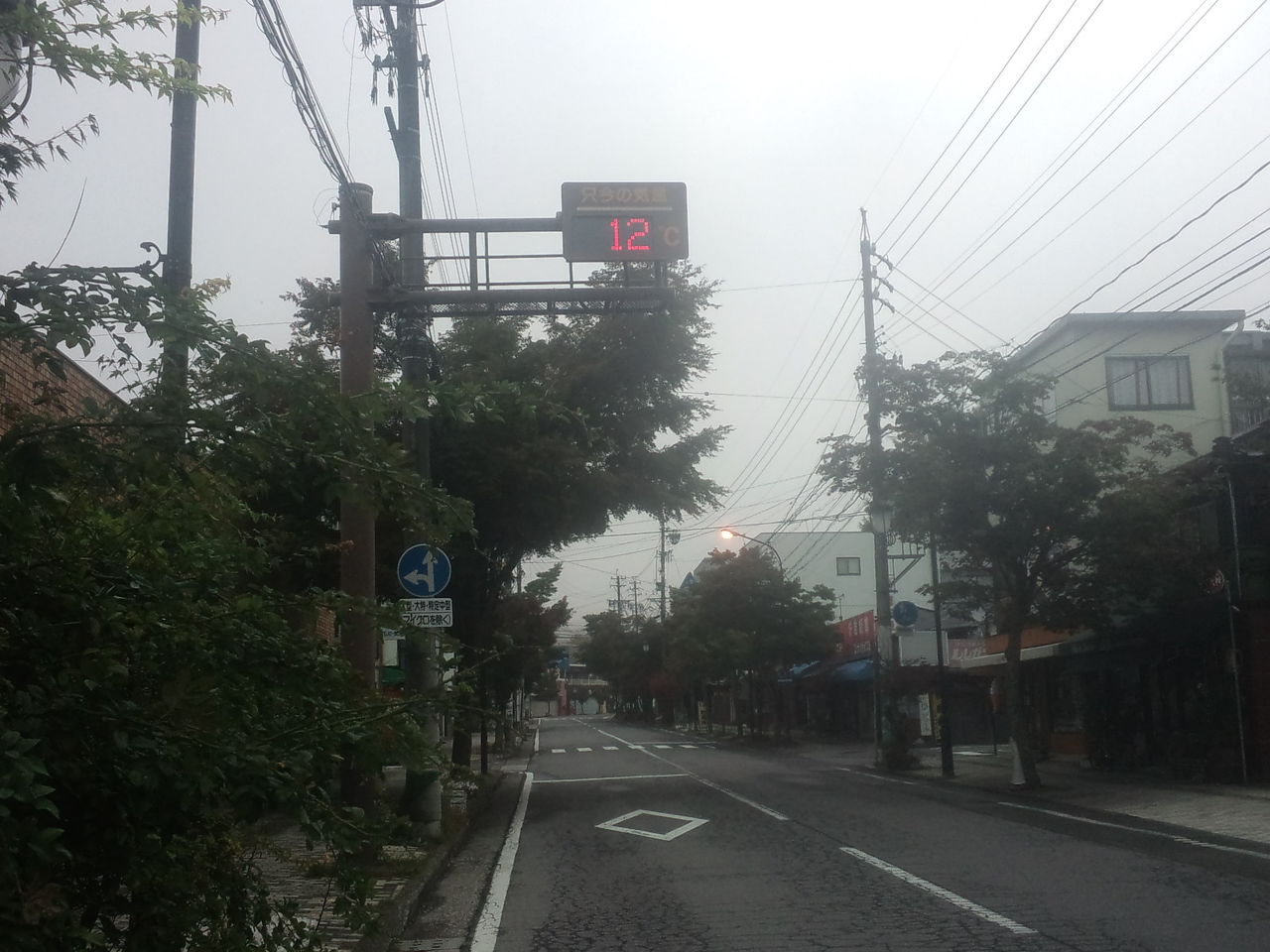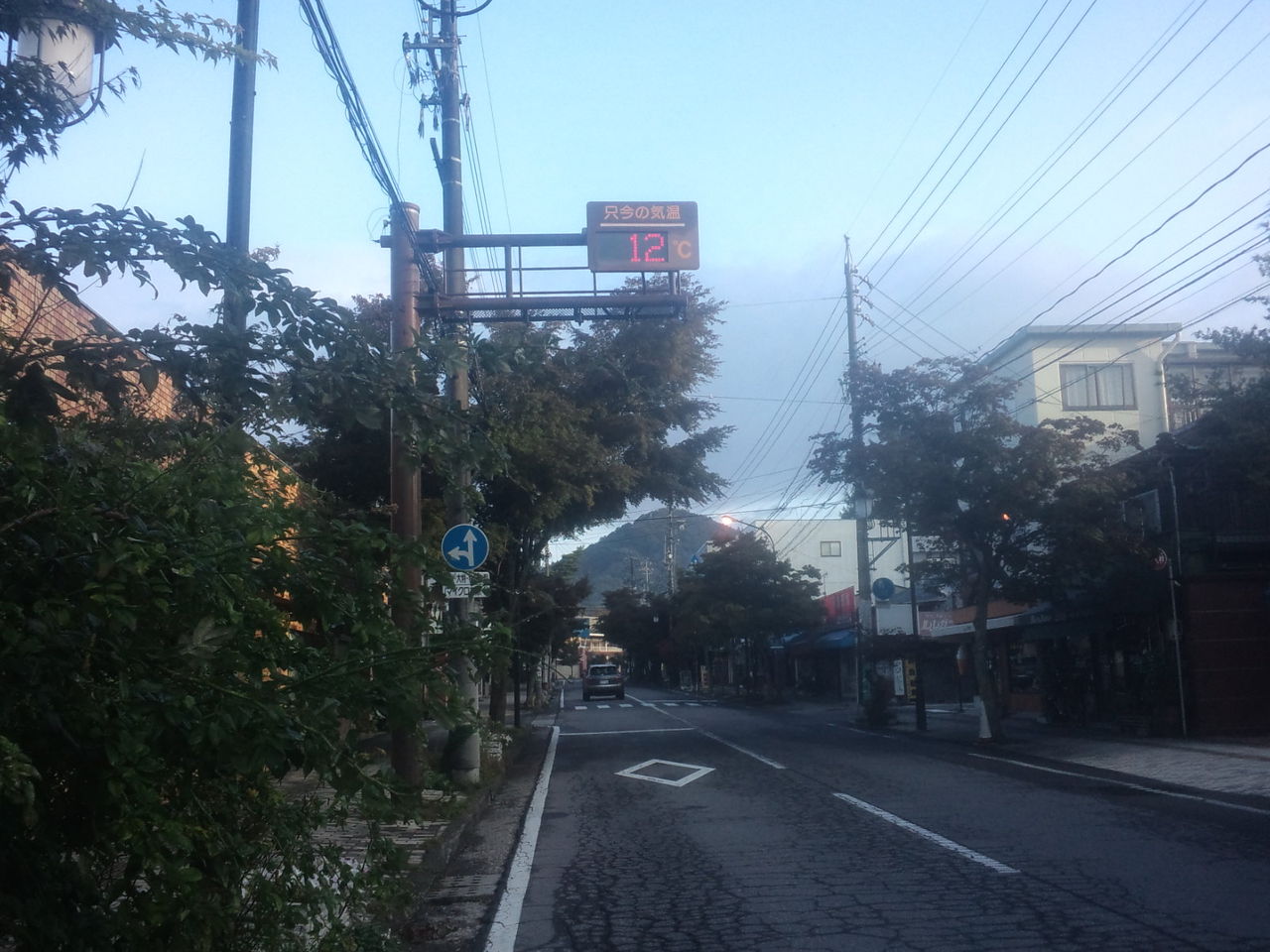 今朝の軽井沢の気温は12℃。天気は曇り空です。