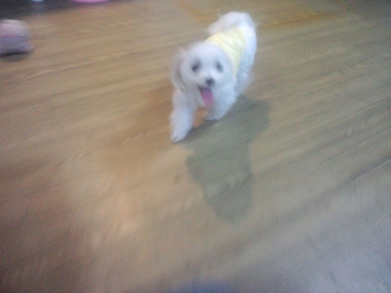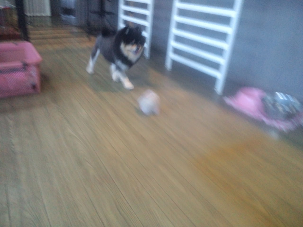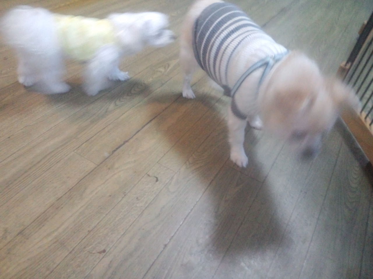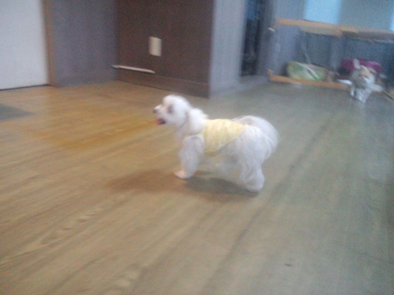 飼い主さんが居なくなるとすぐに静かになりました。店内を走り回ってます。
