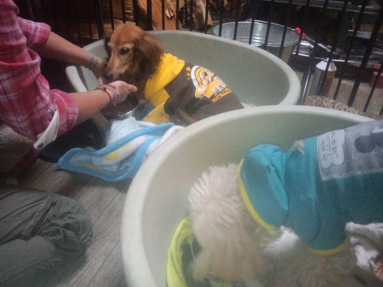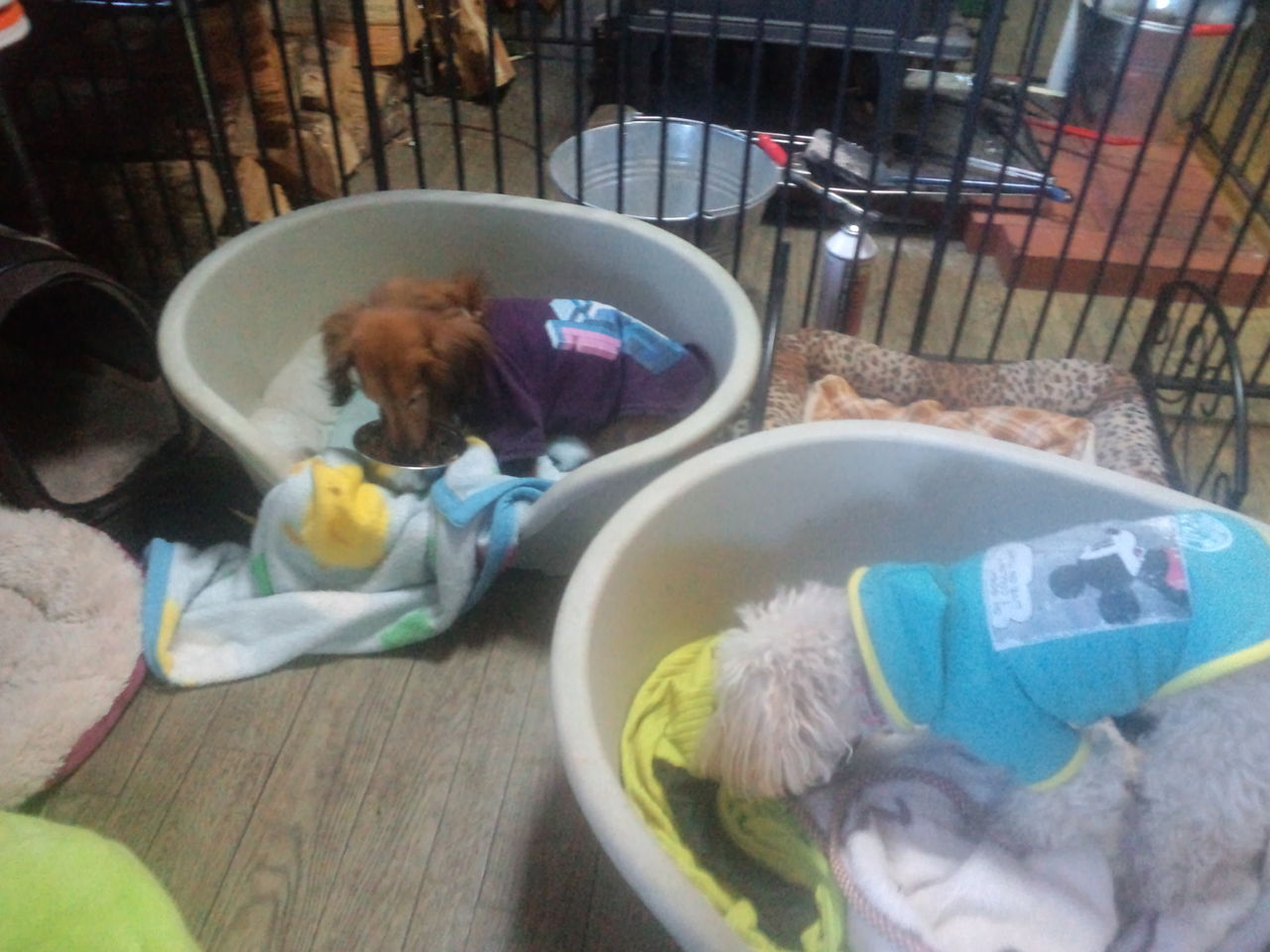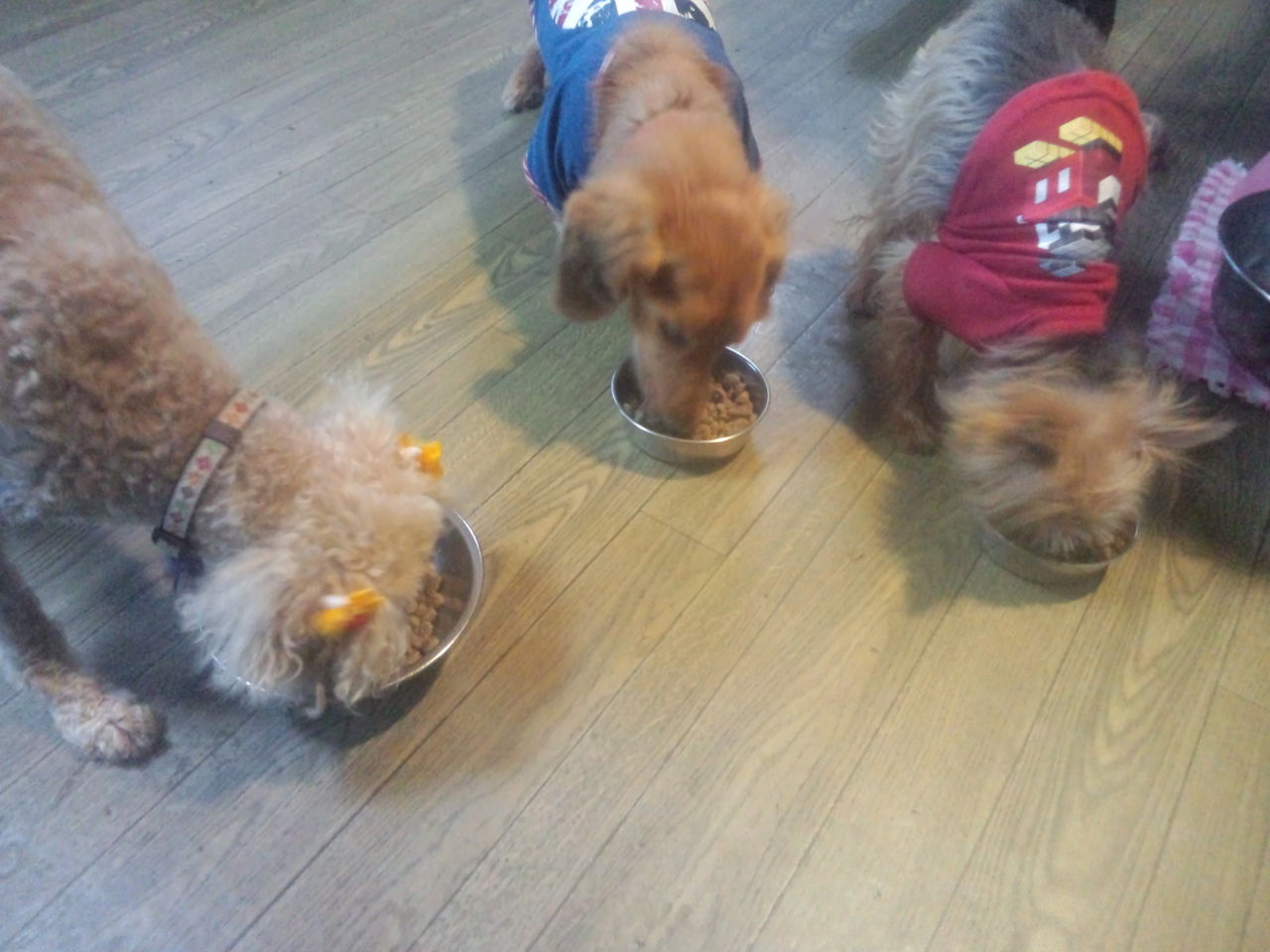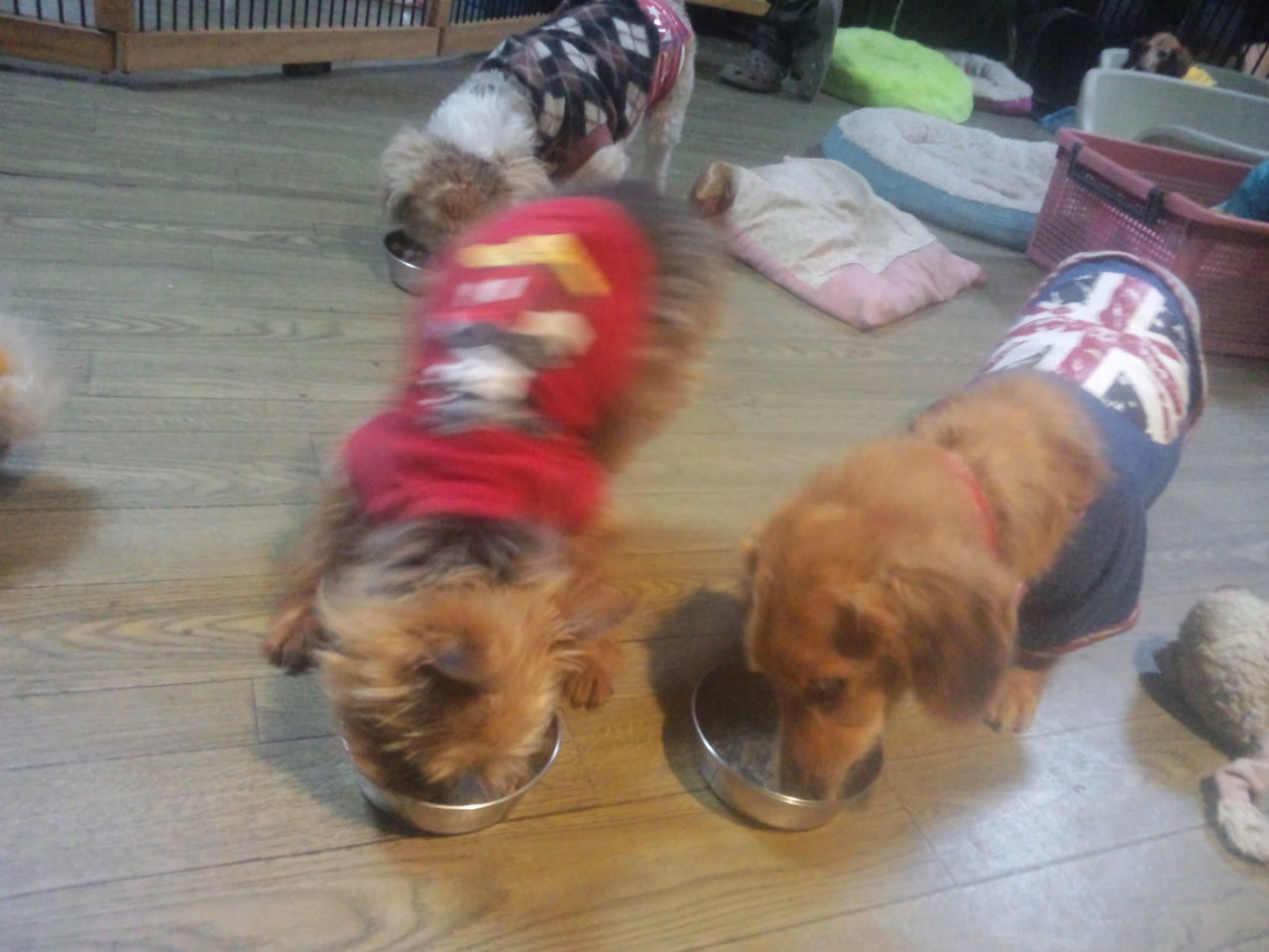 生涯預かりダックスズのラブ君とチャコ君、ヨーキーアイちゃんとシーズーココ君、しっかり完食しました。