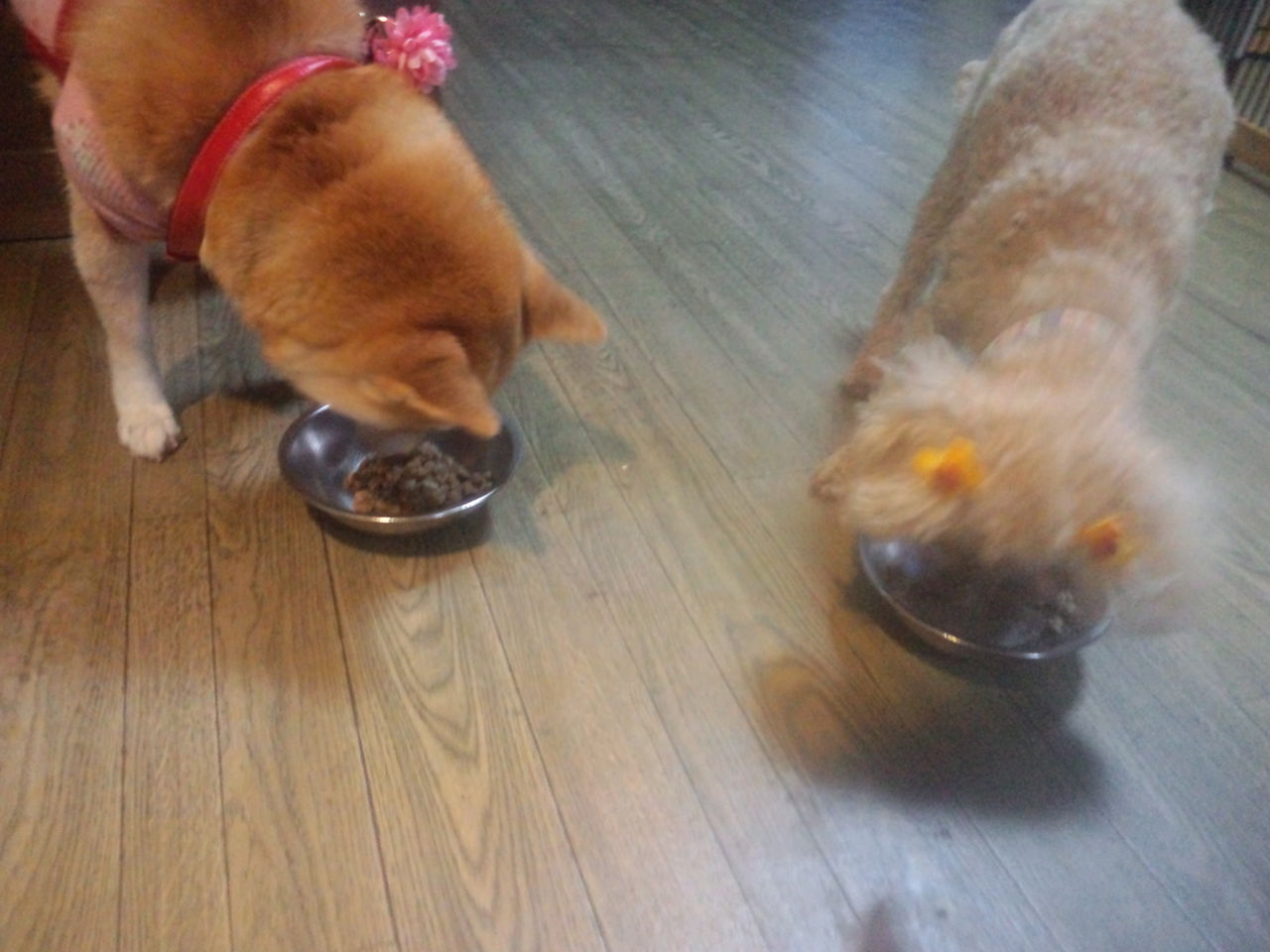 生涯預かり柴凛ちゃん、トイプーテディ君とベラちゃん、しっかり完食しました。