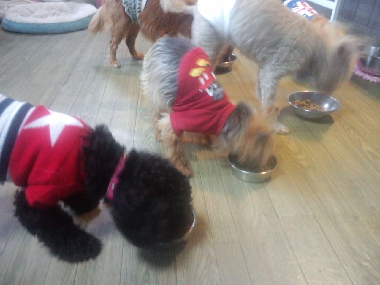 生涯預かりヨーキーアイちゃんとシーズーココ君、トイプーテディ君とベラちゃん、チワワチョビ君しっかり完食しました。