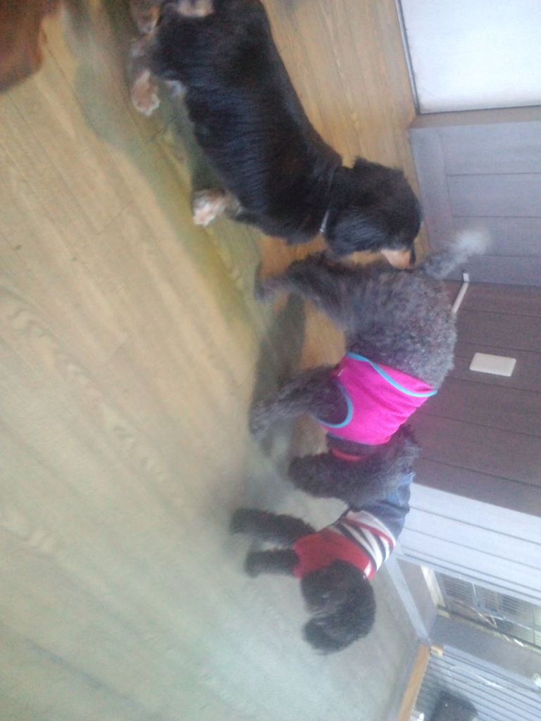 長期預かりキャバリア大吉君とトイプーゆずちゃん、しっかり完食しました。