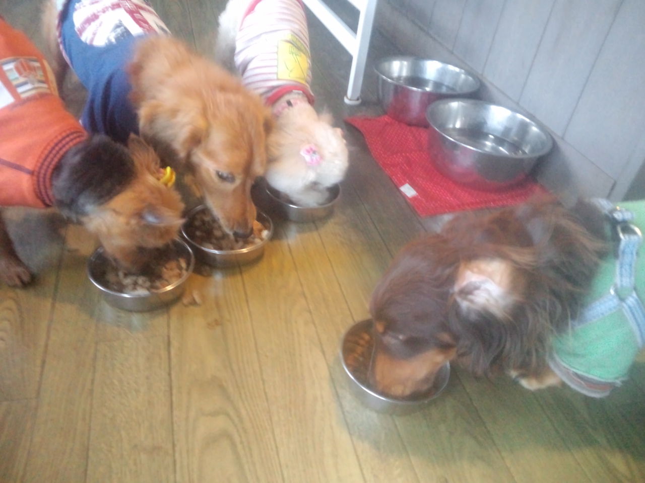 生涯預かりダックスズのラブ君とチャコ君、ヨーキーアイちゃんとシーズーココ君、しっかり完食しました。