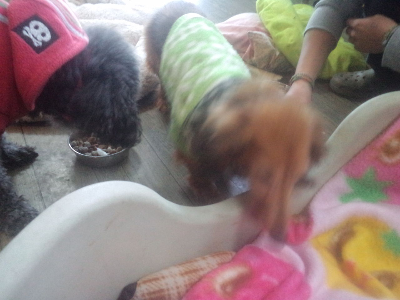 長期預かりキャバリア大吉君とトイプーゆずちゃん、しっかり完食しました。
