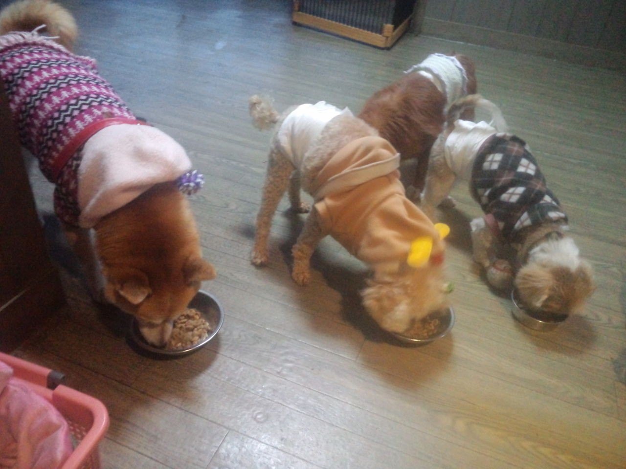 生涯預かりダックスズのラブ君とチャコ君、ヨーキーアイちゃんとシーズーココ君、しっかり完食しました。