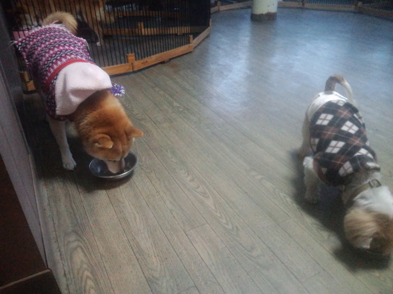 生涯預かり柴凛ちゃんとチワワチョビ君、しっかり完食しました。
