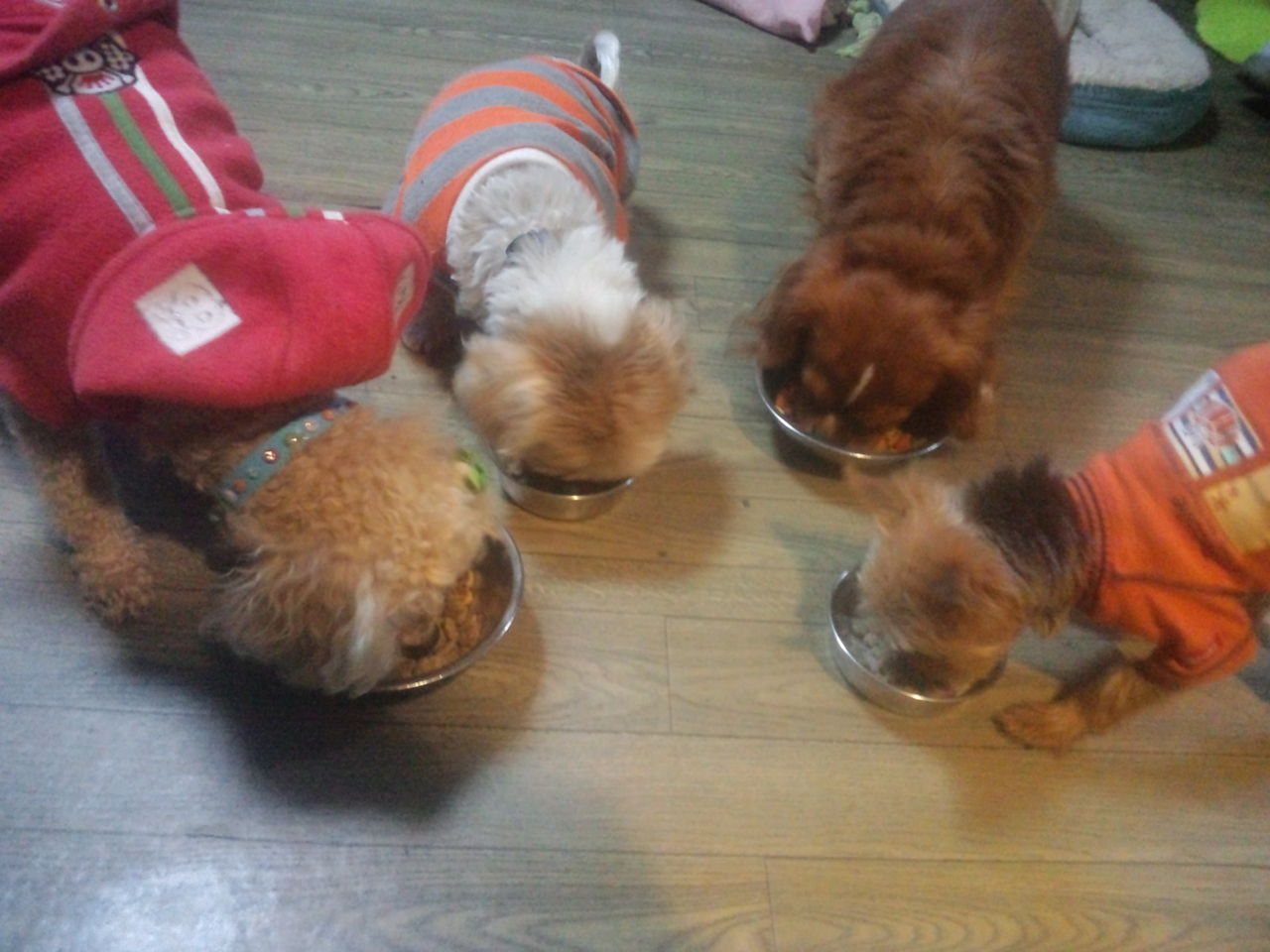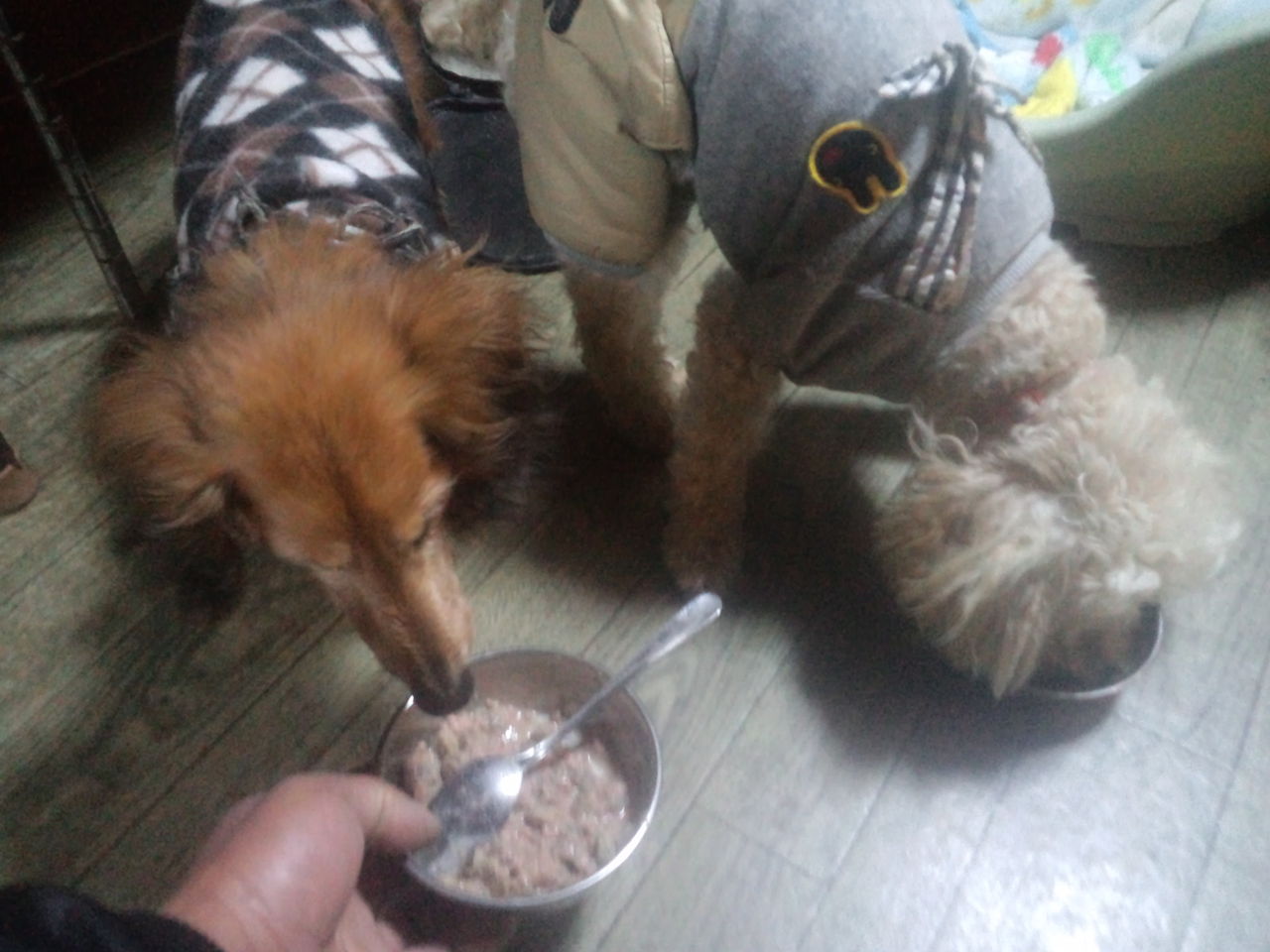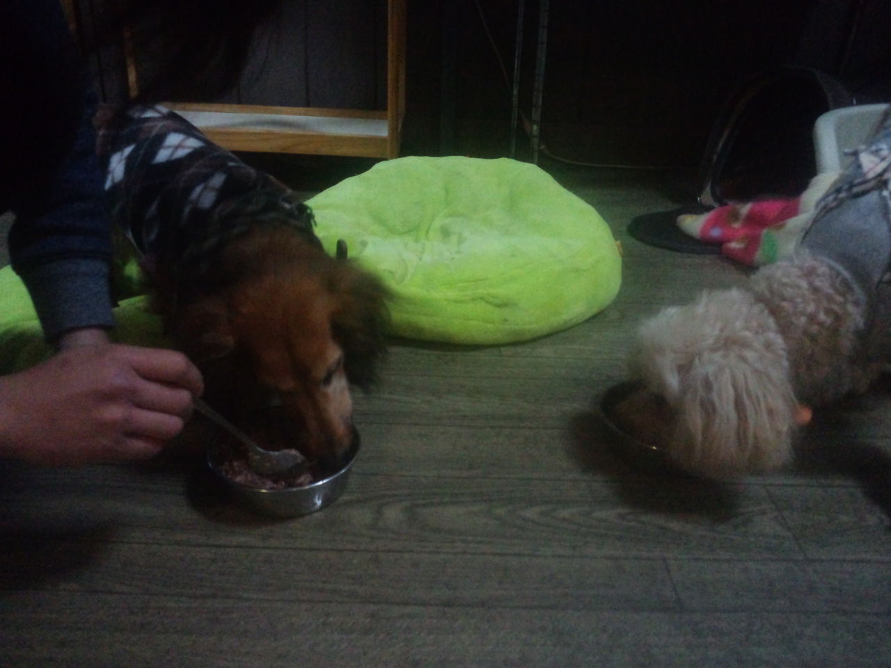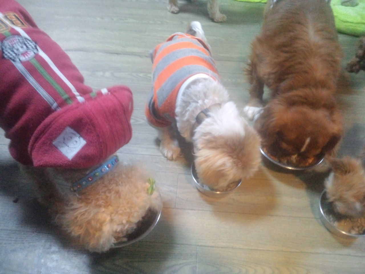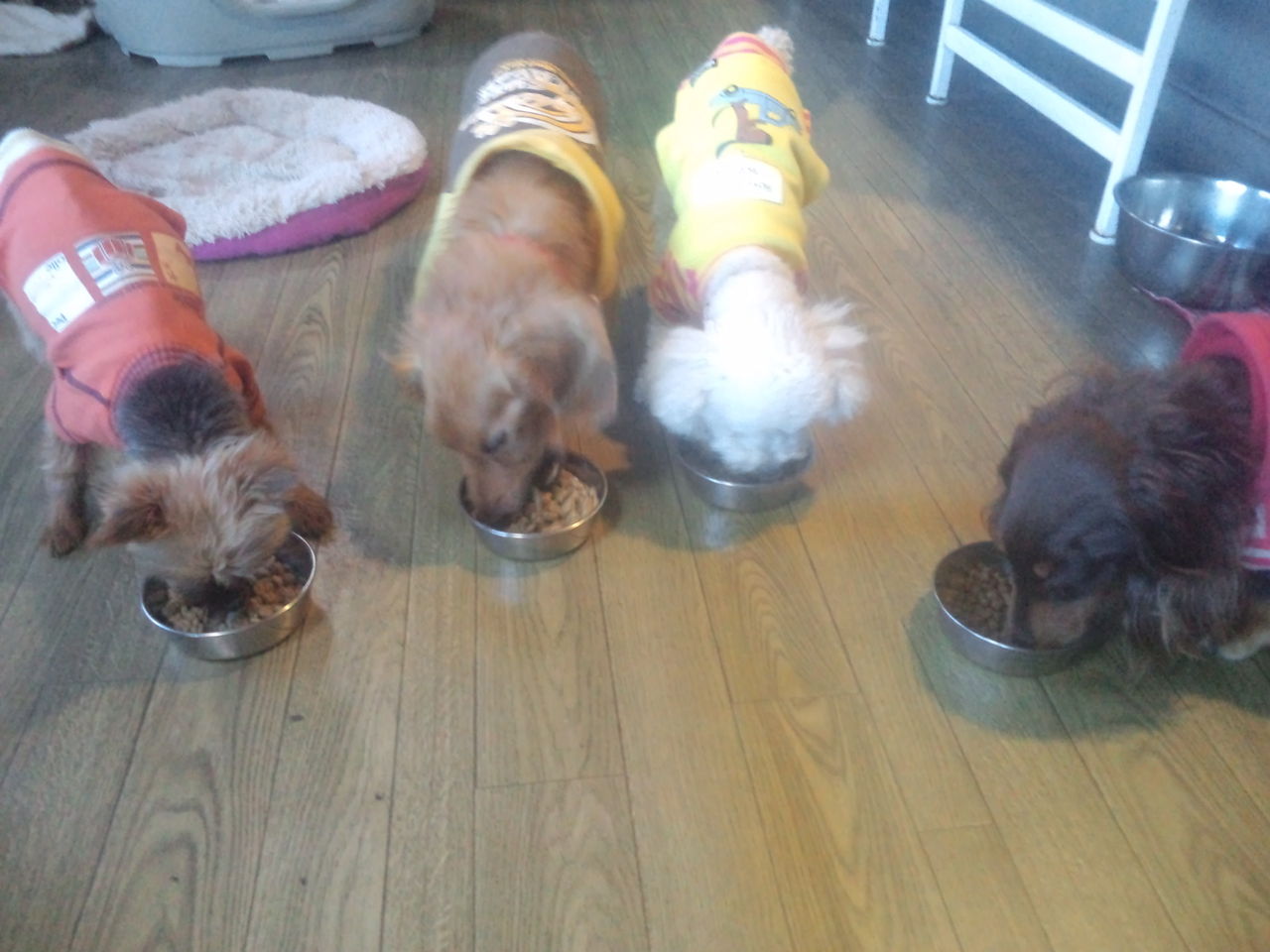 生涯預かりダックスズのラブ君とチャコ君、ヨーキーアイちゃんとシーズーココ君、しっかり完食しました。