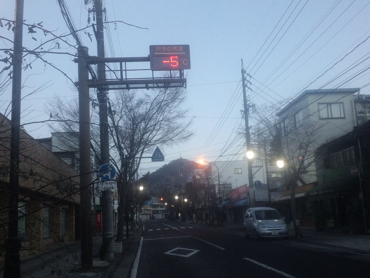 今朝の軽井沢の気温がマイナス5℃。天気は晴れてます。